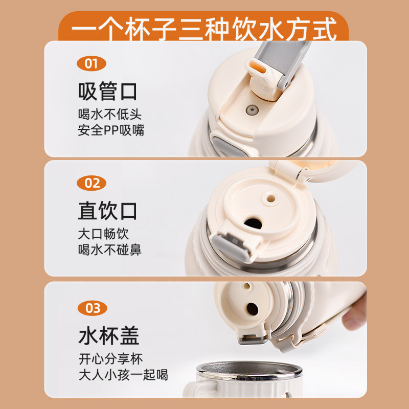 史努比儿童保温杯学生上学专用男女孩316L食品级吸管水壶双饮杯子