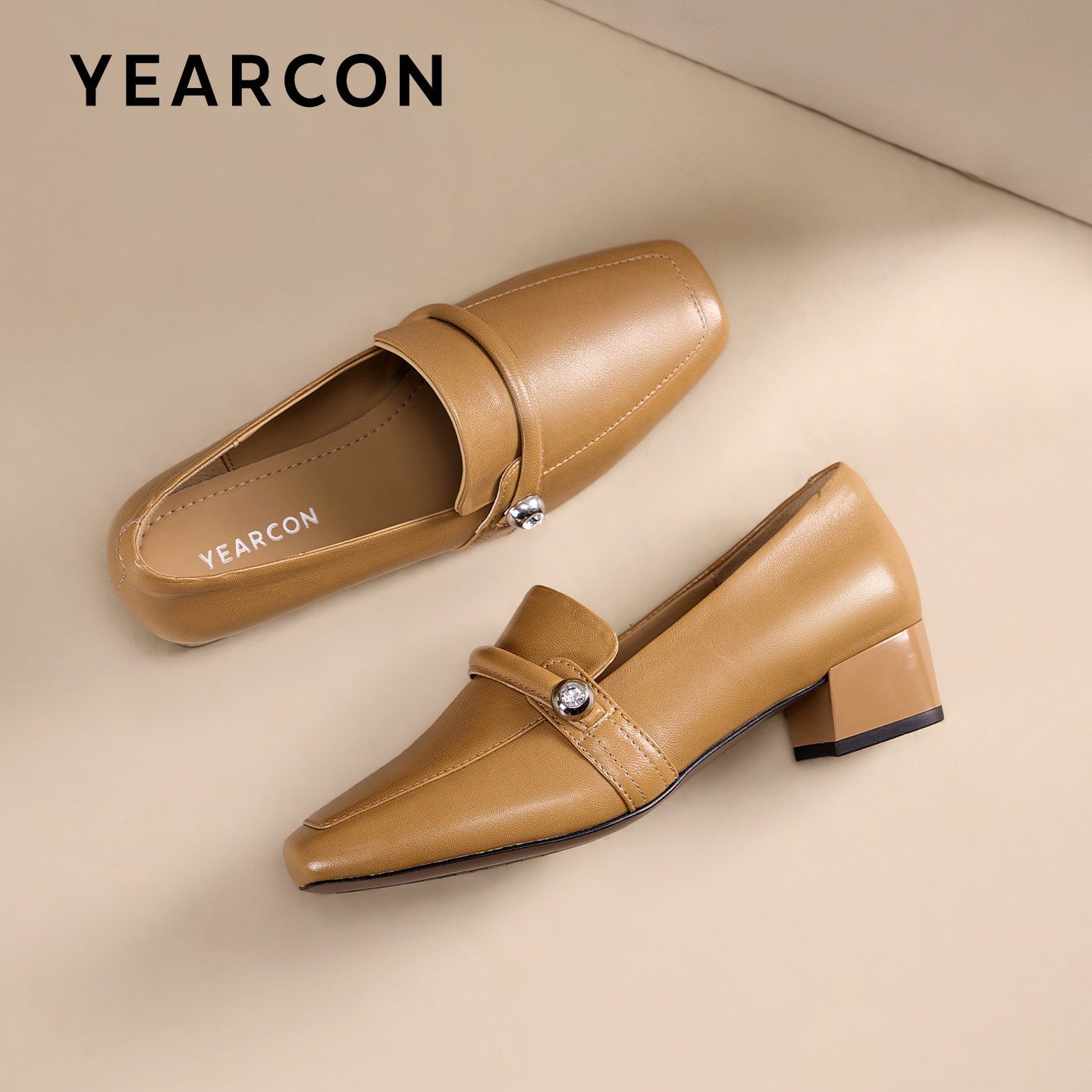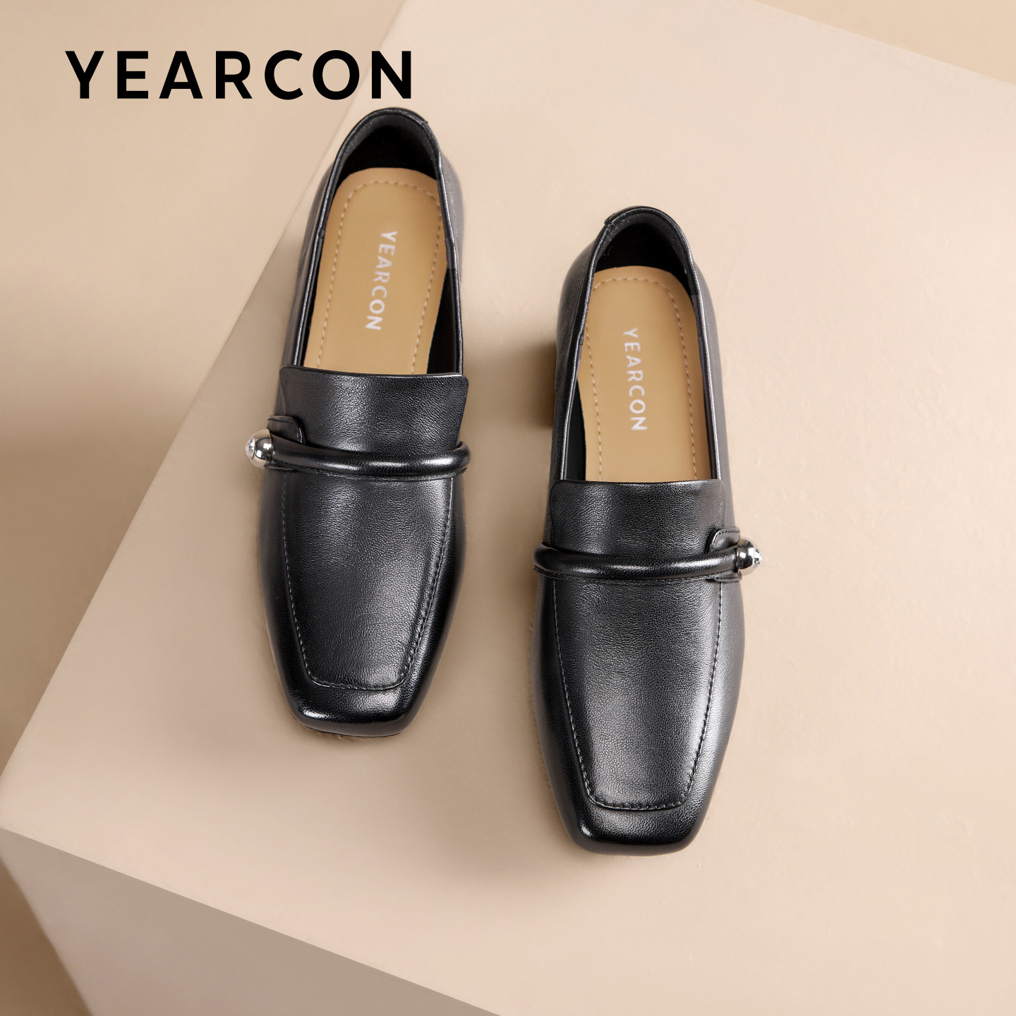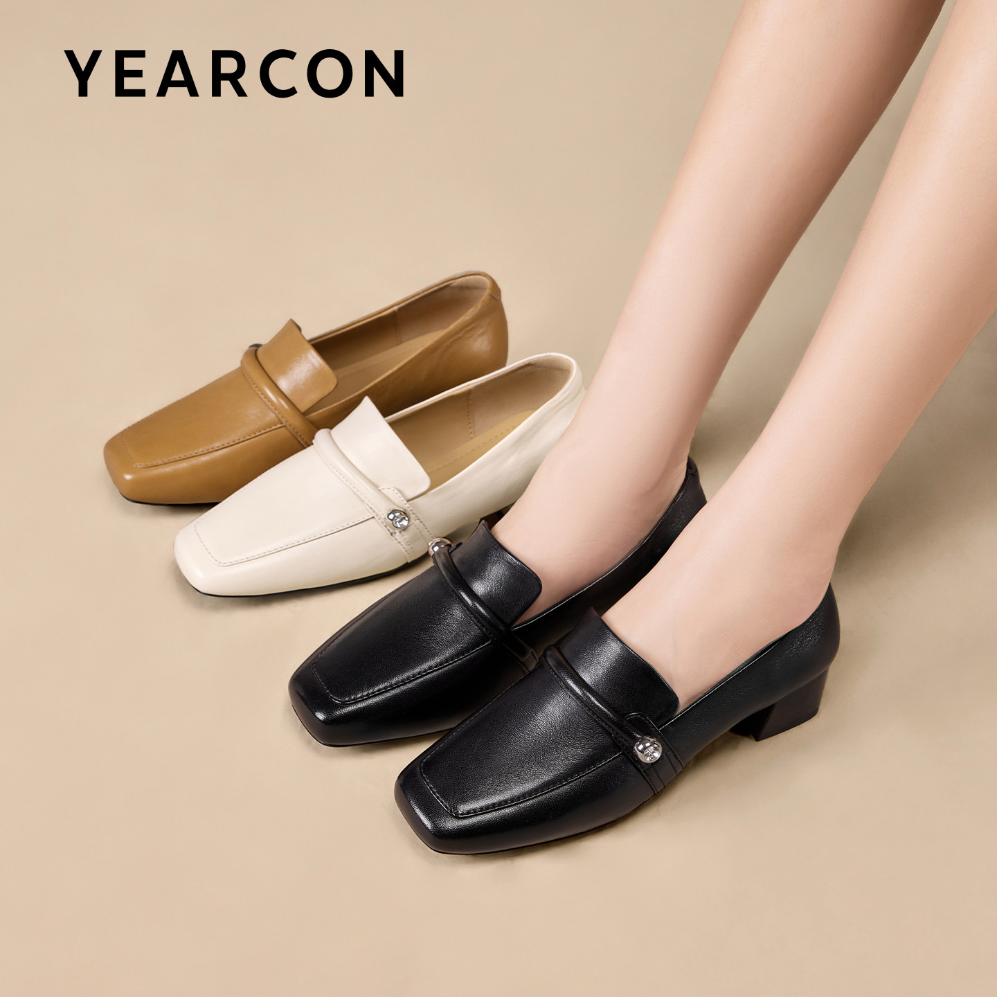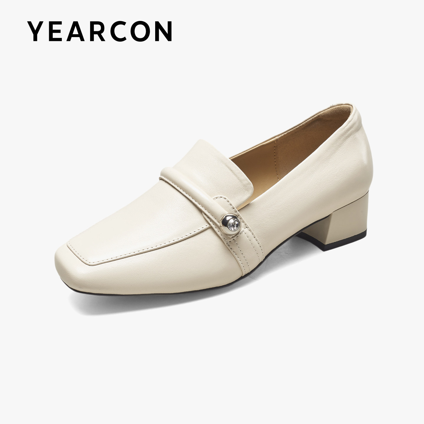 意尔康白色真皮乐福鞋女2026款春季气质妈妈不累脚方头粗跟单鞋
