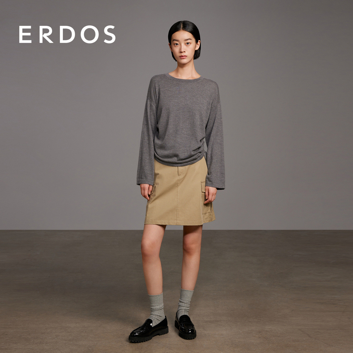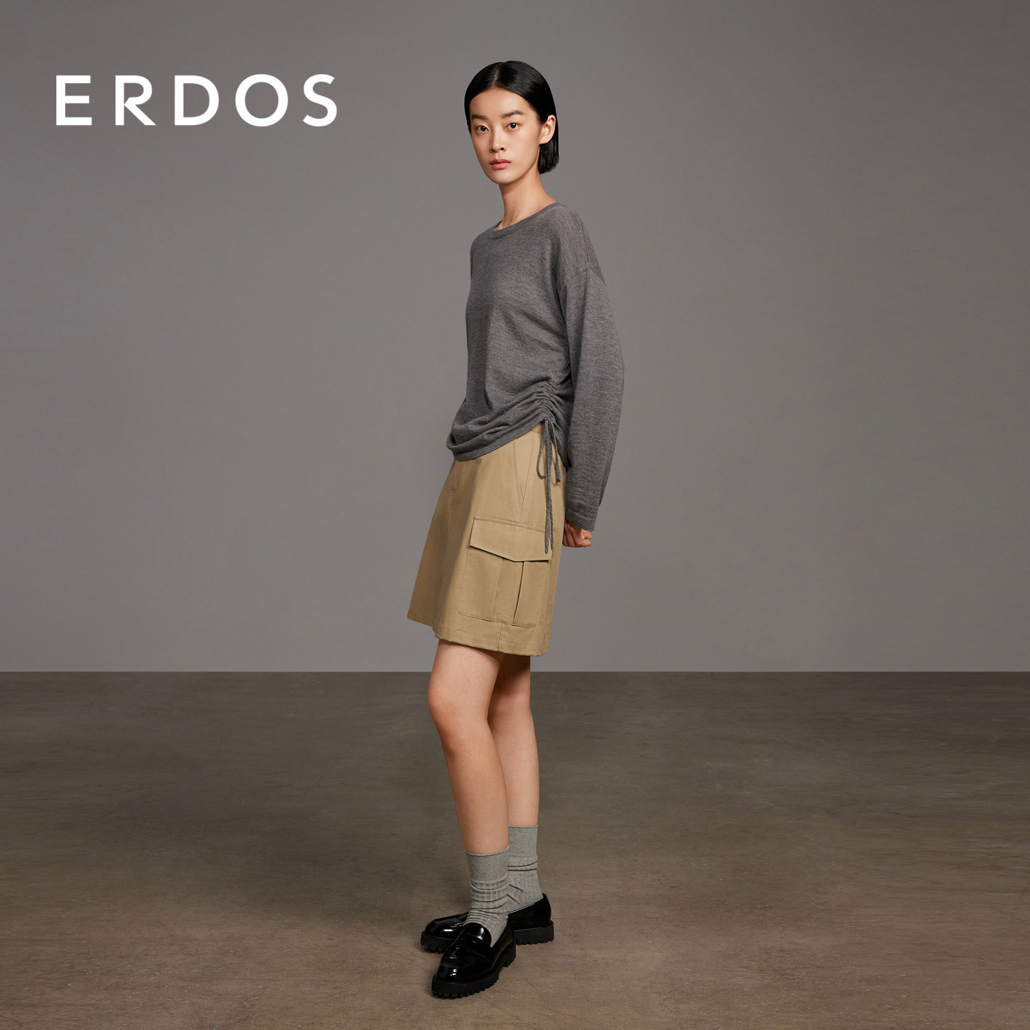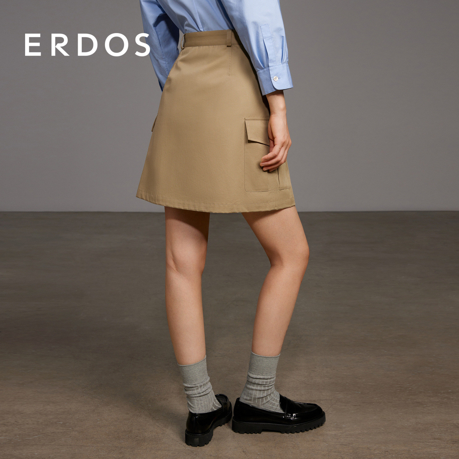ERDOS 纯棉休闲A字半身裙女春华达呢工装风高腰迷你短裙