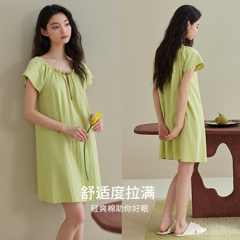 轩靓睡裙女士夏季薄款纯棉短袖休闲时尚睡衣女款大码家居服连衣裙
