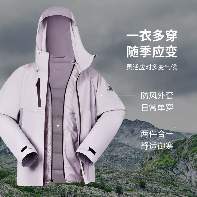 坦博尔冬季奥莱户外防风保暖一衣三穿可脱卸内胆女款叠穿羽绒服