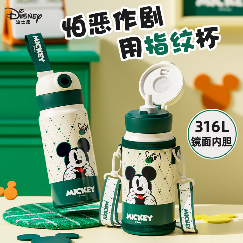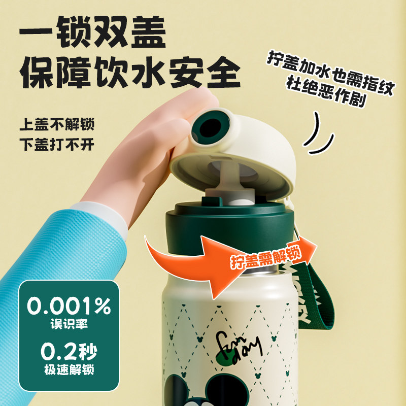 迪士尼儿童指纹保温杯2026新款男孩双饮水杯小学生上学专用礼盒装