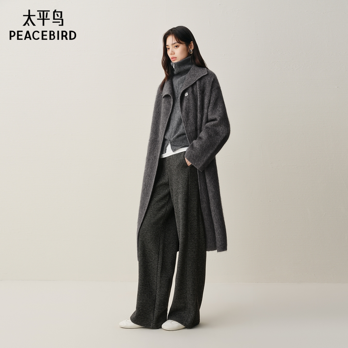 【商场同款】太平鸟25冬新高级感牦牛绒大衣式针织开衫A1EDF4271