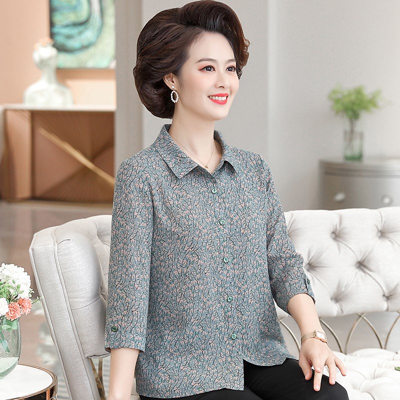 妈妈衬衫春夏上衣服宽松薄款母亲节中老年女士洋气七分袖翻领衬衣