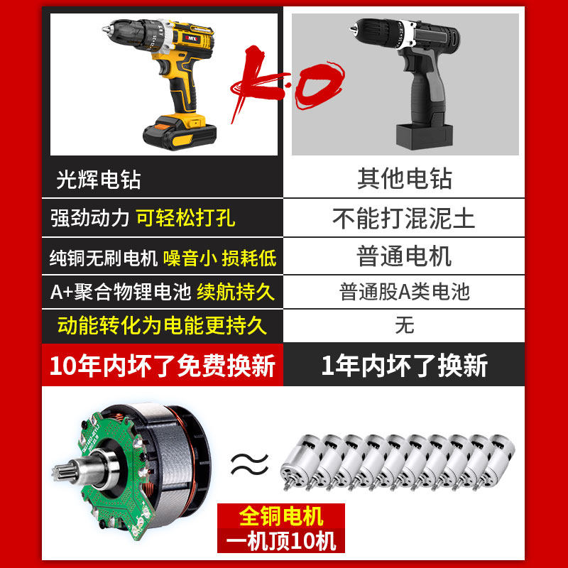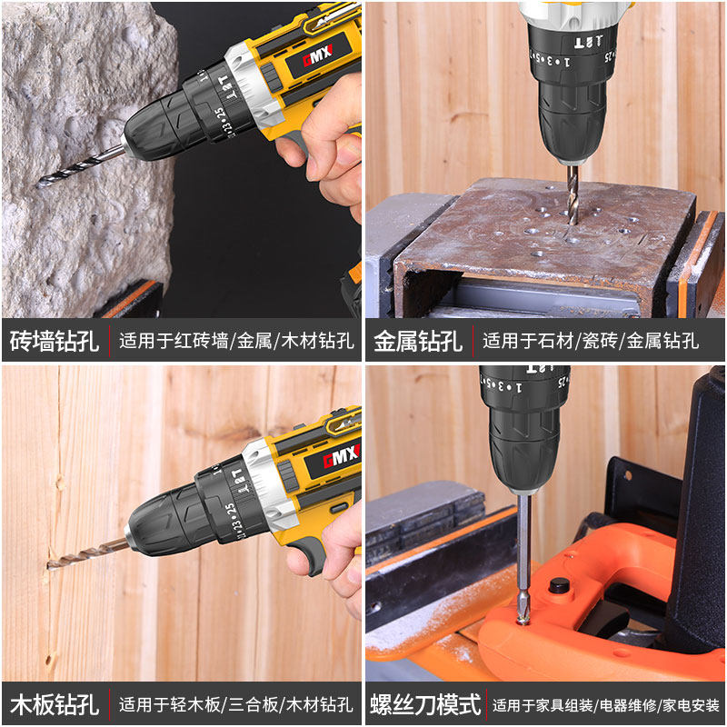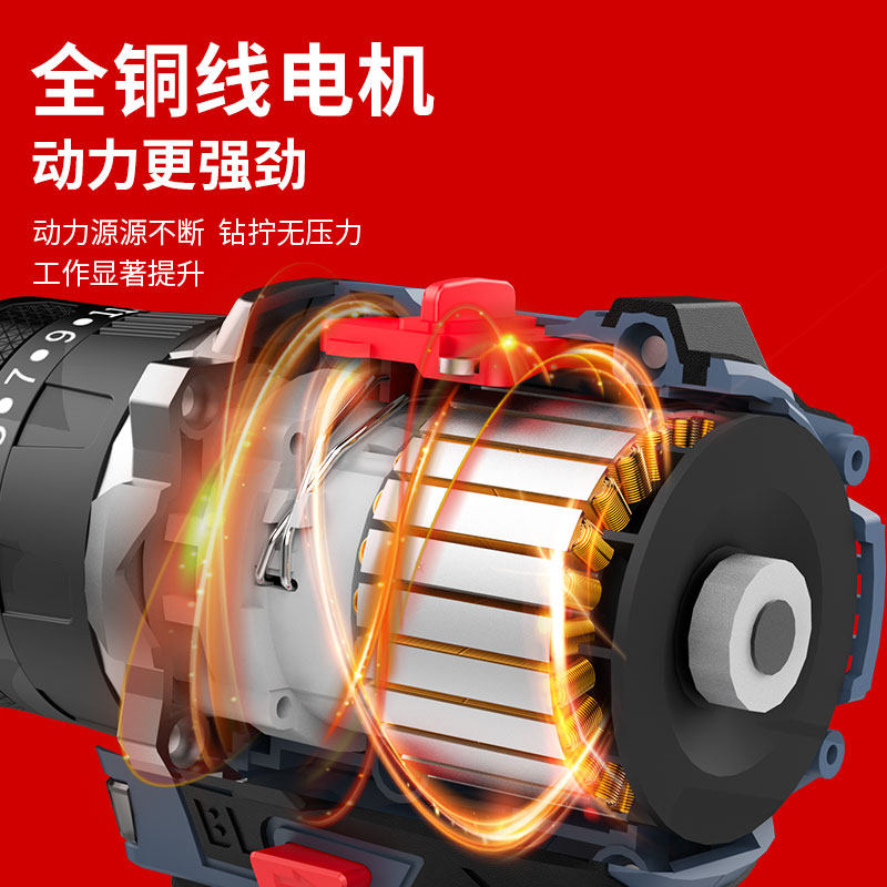 手电钻家用锂电冲击充电式手钻多功能无刷手枪转钻电动螺丝刀套装