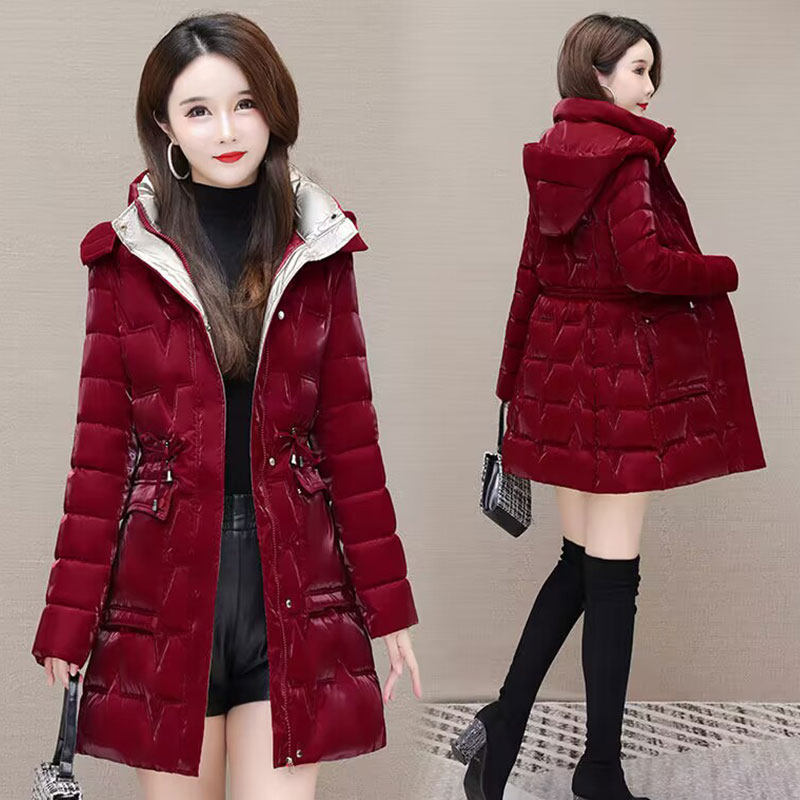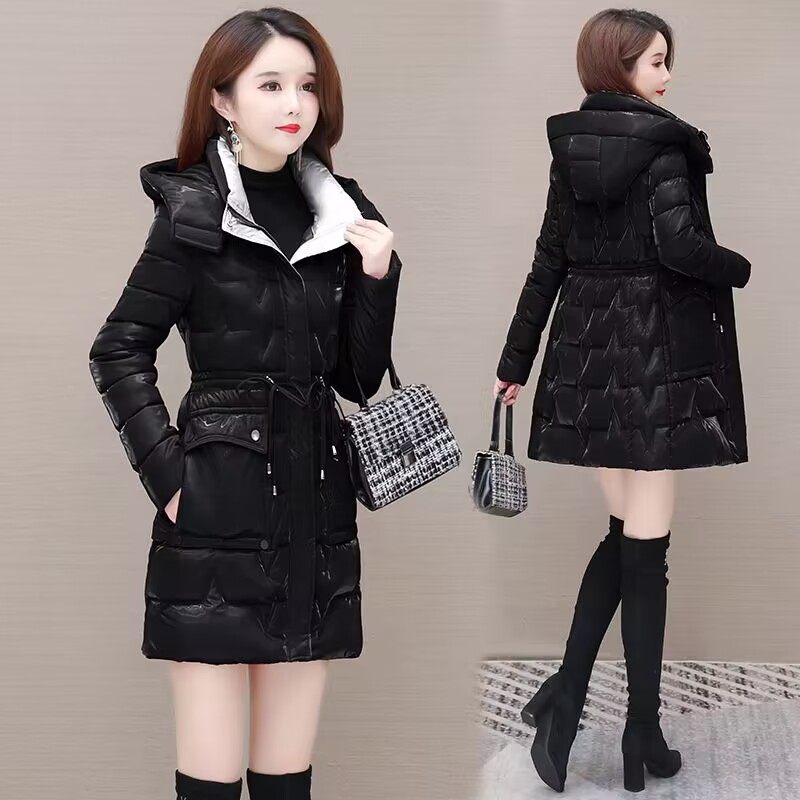 棉衣女中长款冬季新款加厚韩版修身时尚棉服洋气免洗亮面保暖棉袄