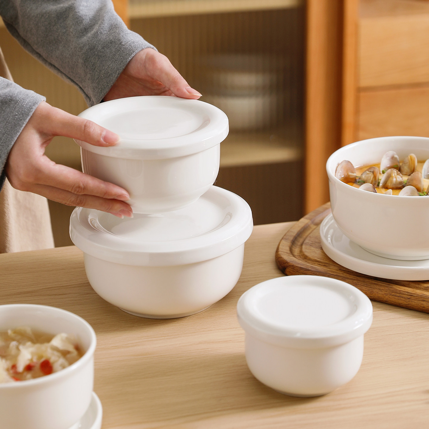 舍里简约带盖蒸蛋碗陶瓷炖蛋碗蒸鸡蛋羹蒸碗家用蒸饭蒸菜小碗炖盅
