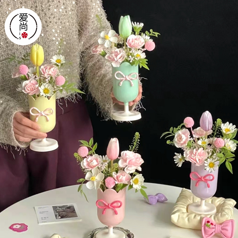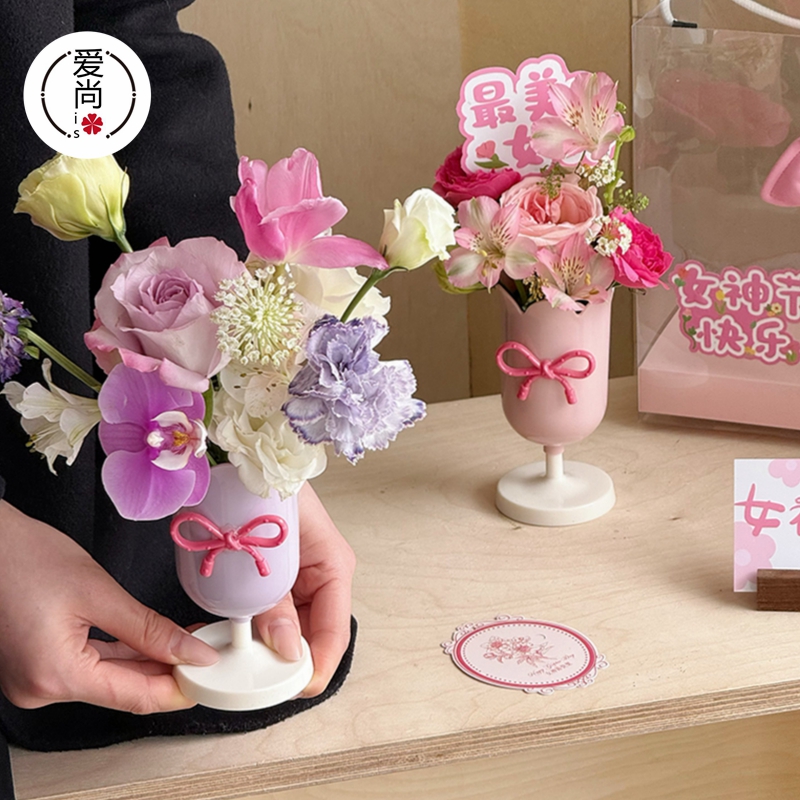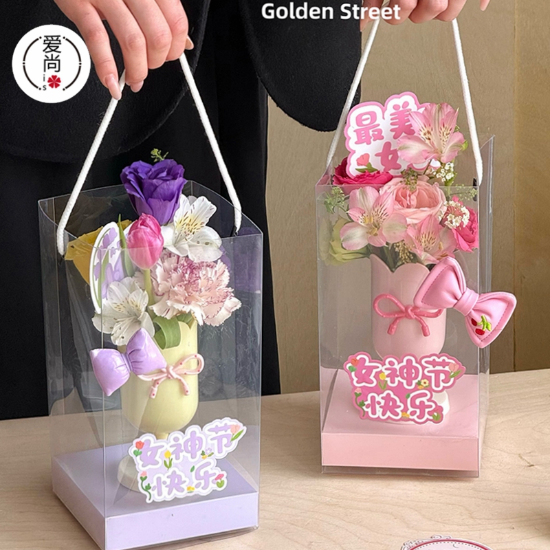 母亲节郁金香花瓶PVC透明手提花盒 手提袋鲜花花艺插花礼物盒