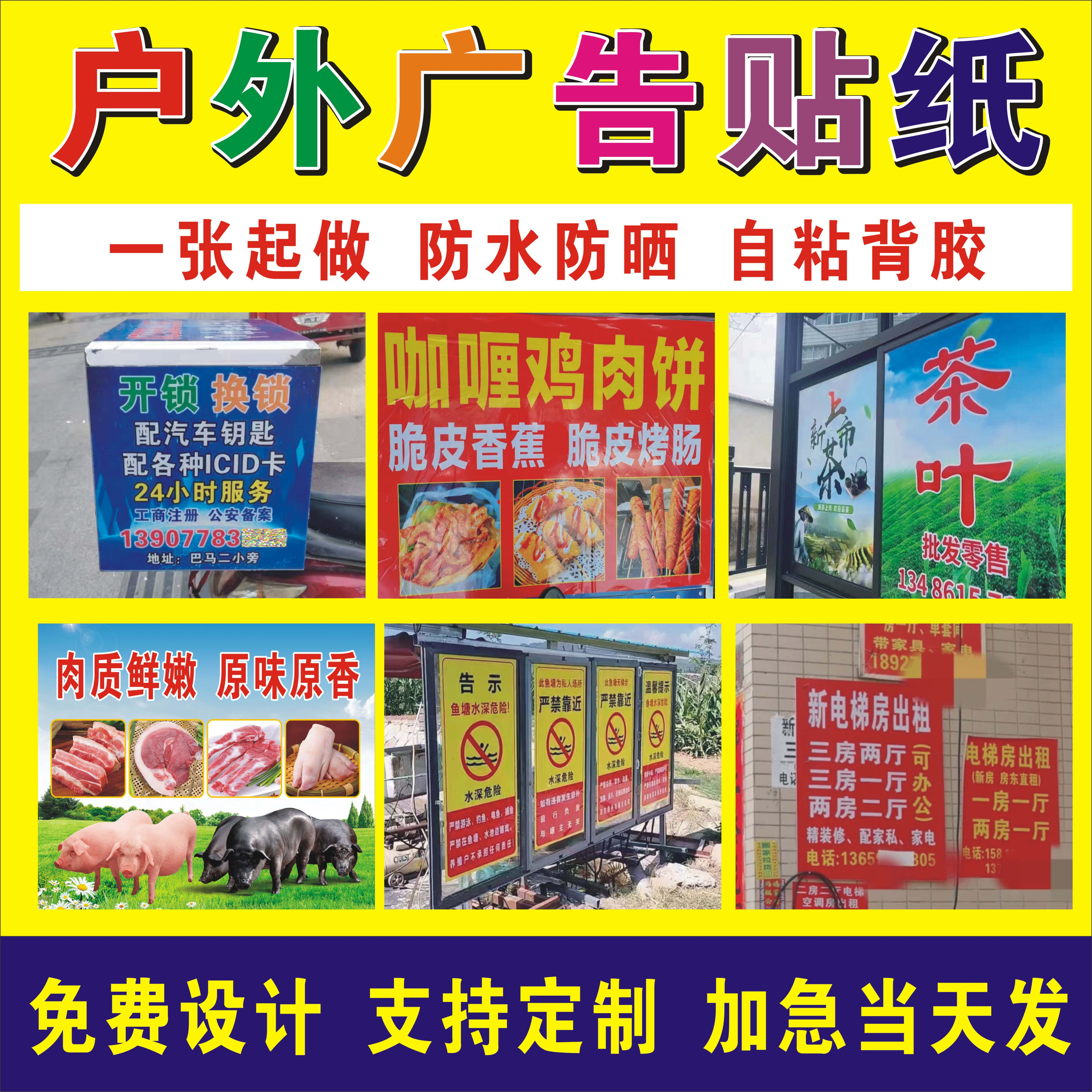 防水防晒户外pvc不干胶小广告墙贴定做定制背胶贴纸车贴自粘海报