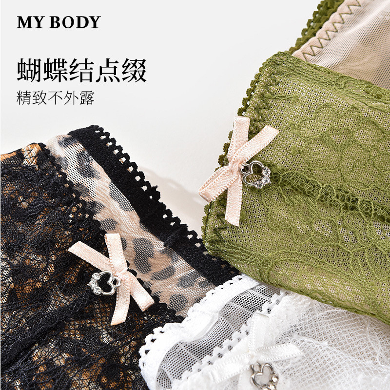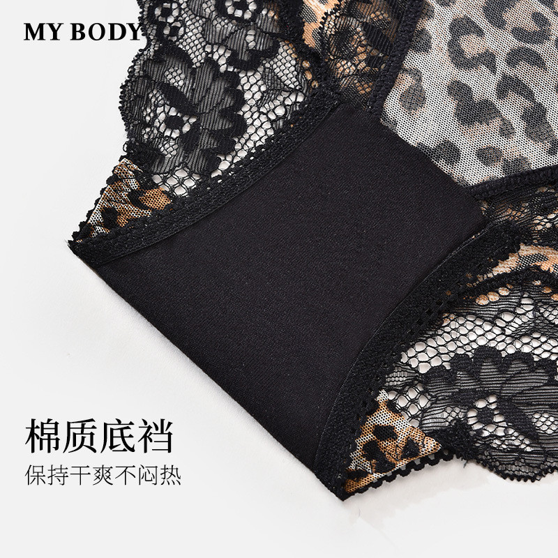 3件159|商场同款MYBODY新款内裤法式蕾丝网纱豹纹印花性感三角裤