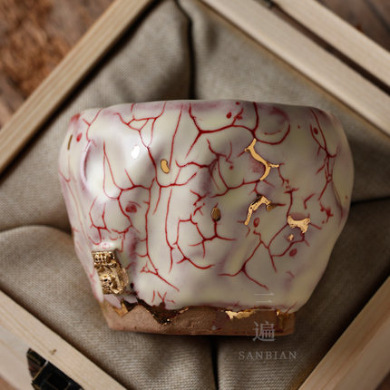 纯手工志野烧茶杯单杯台湾老岩泥陶瓷点金功夫茶盏日式柴烧主人杯