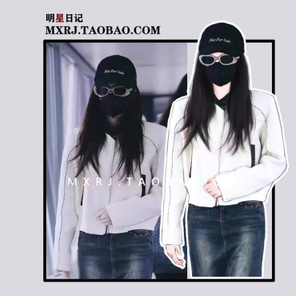 白鹿明星同款立体针织线短款棒球度立领宽松小香风外套上衣女生