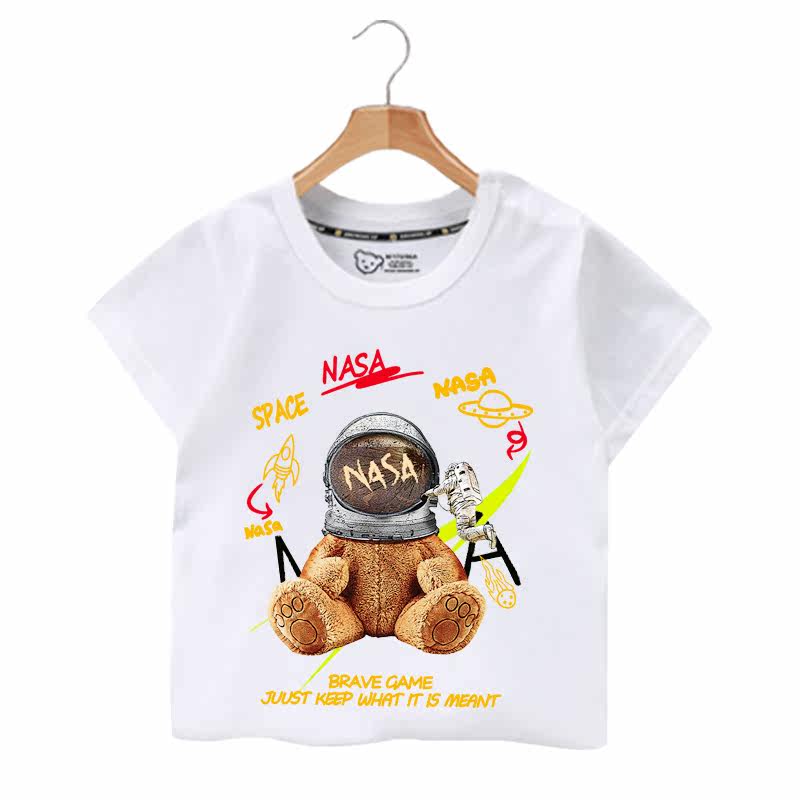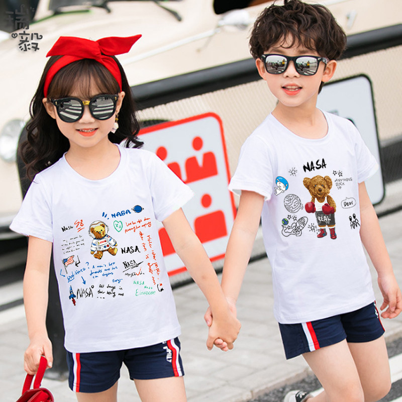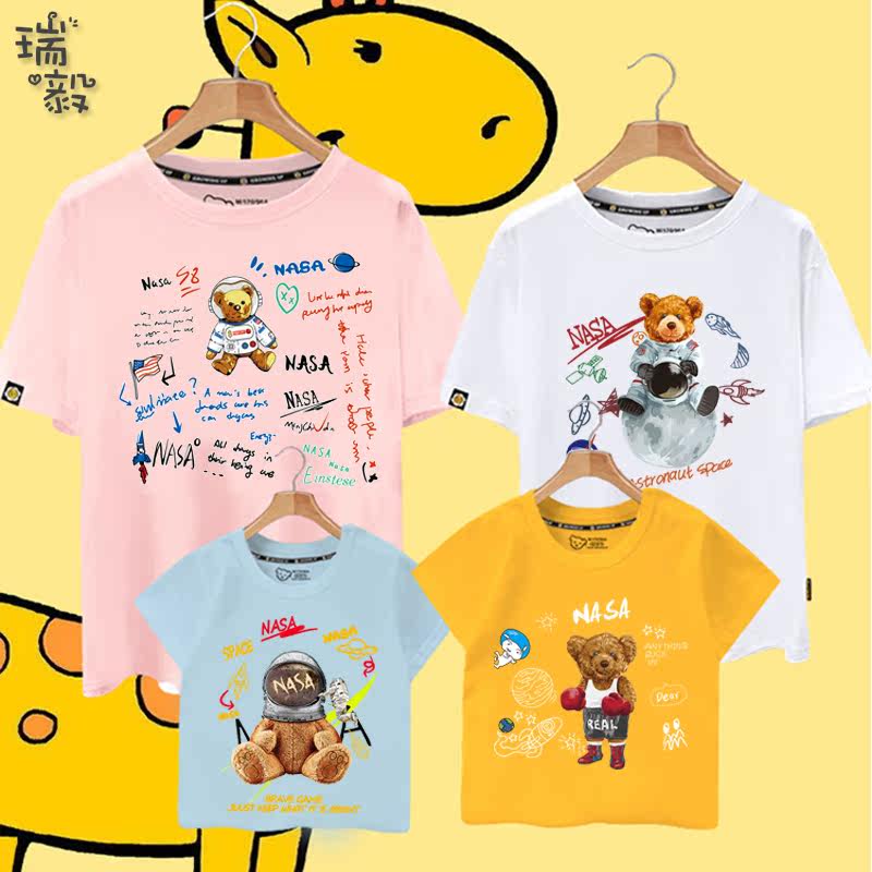 nasa联名太空熊宇航员短袖T恤衫男女大中小儿童装学生款纯棉半袖