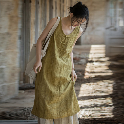 苎麻连衣裙女2025年春夏新款女装原创扎染盘扣国风遮肚子显瘦长裙