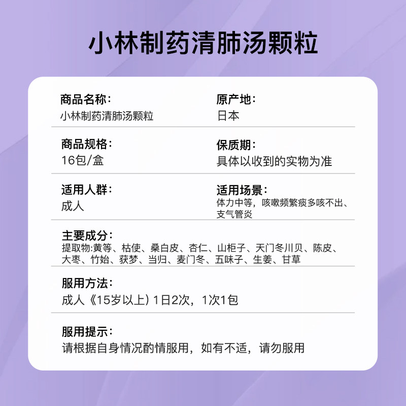 小林制药清肺汤16包润肺止咳化痰