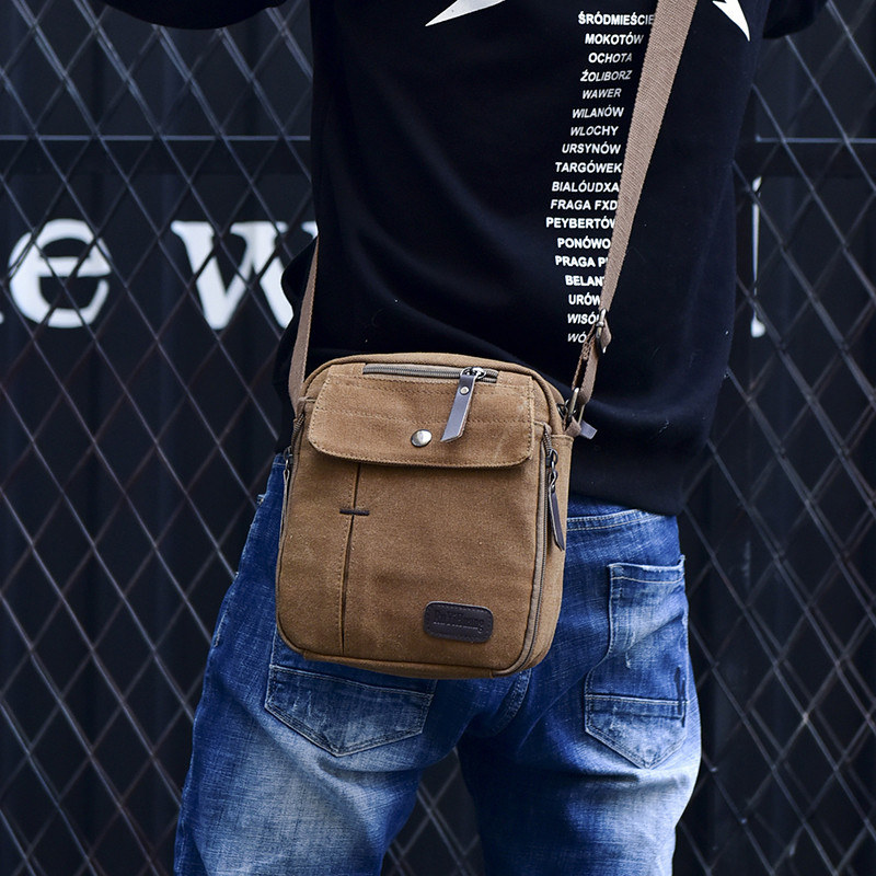 帆布男包休闲斜挎小背包外出单肩小包多功能轻便简约男士帆布包包