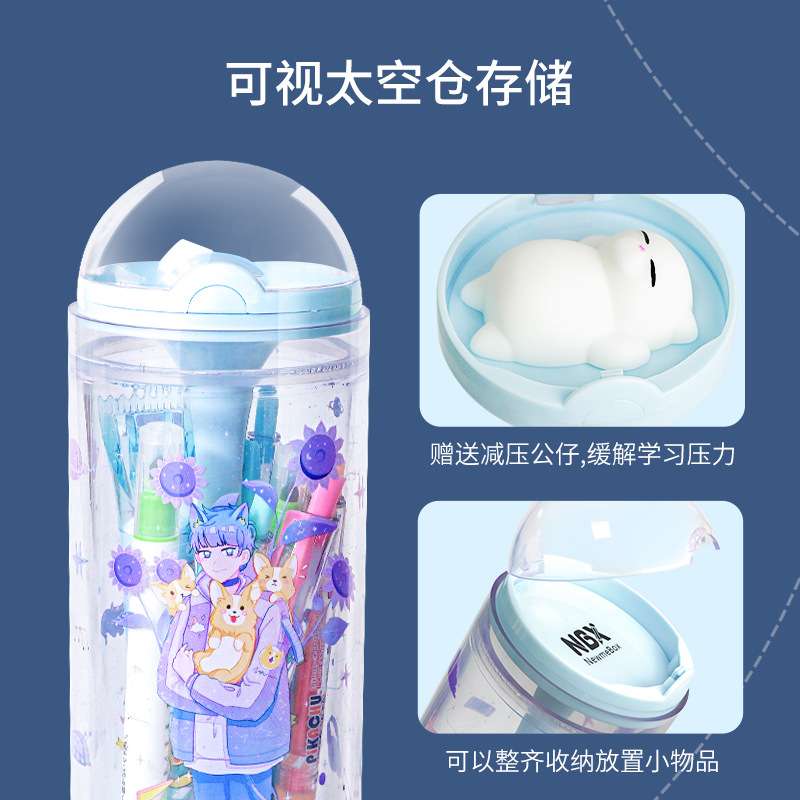 NBX流沙升降不倒笔盒笔袋学生文具铅笔盒笔盒透明按文具创意个性