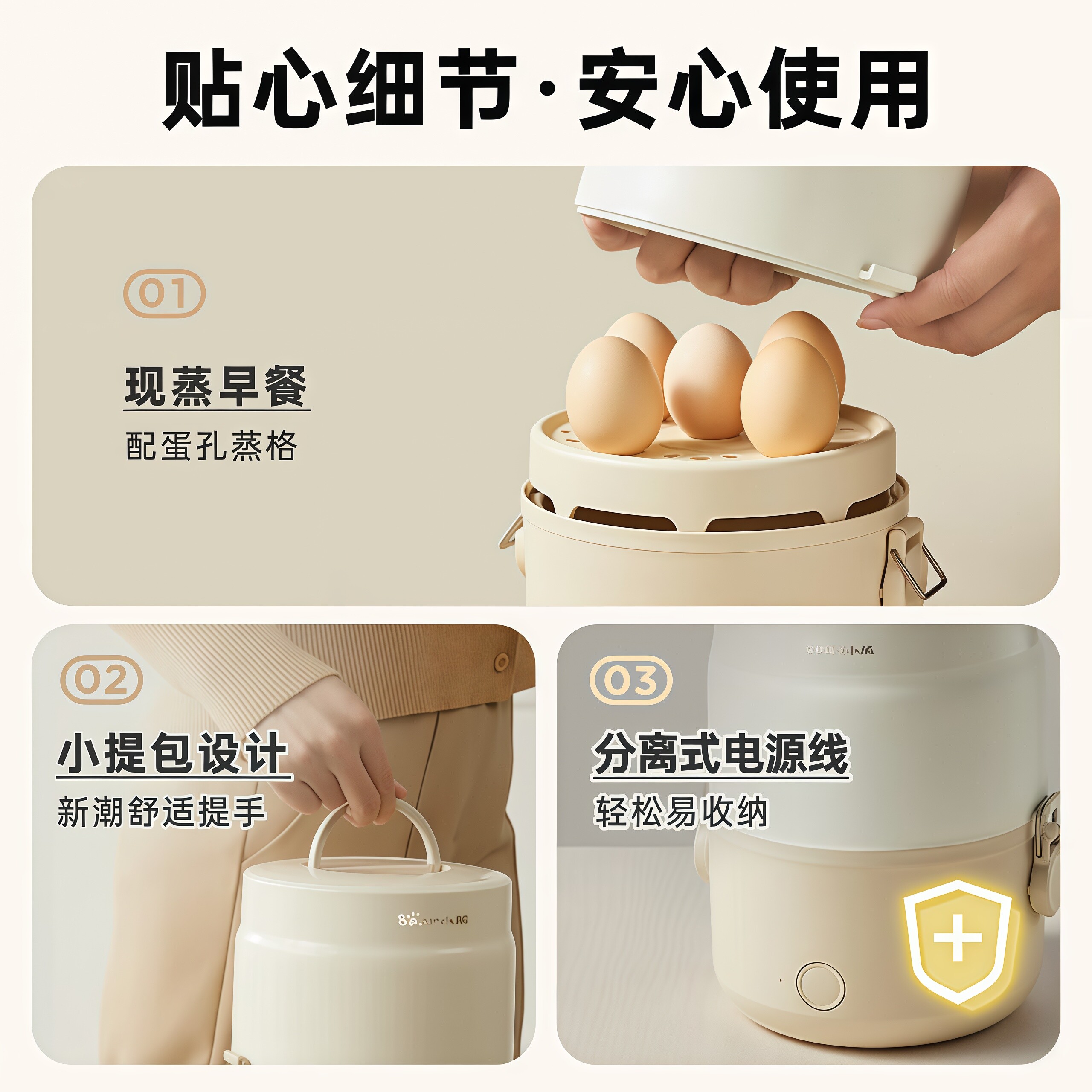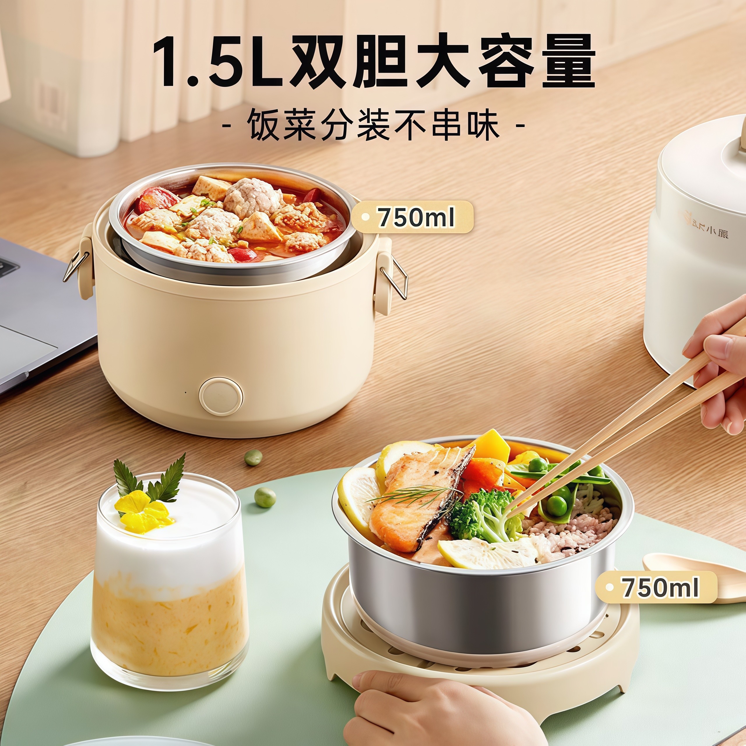 小熊电加热饭盒可插电保温饭盒上班族自热饭菜神器便携蒸煮便当盒