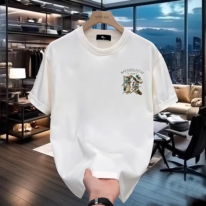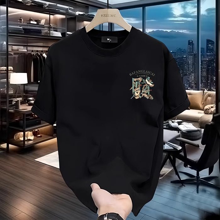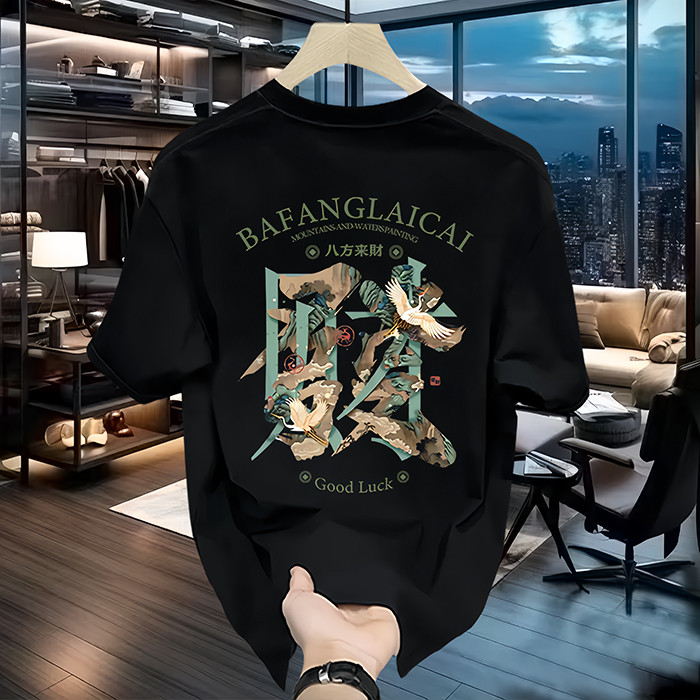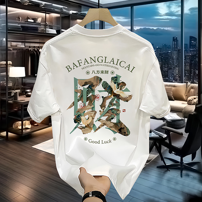 2025新款短袖男装t恤潮流纯棉印花八方来财高级感上衣