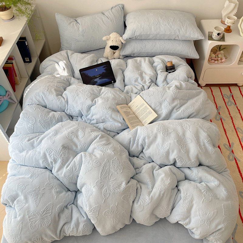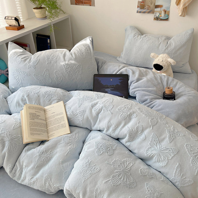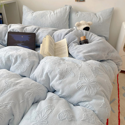 ins冬季保暖雕花绒牛奶绒四件套