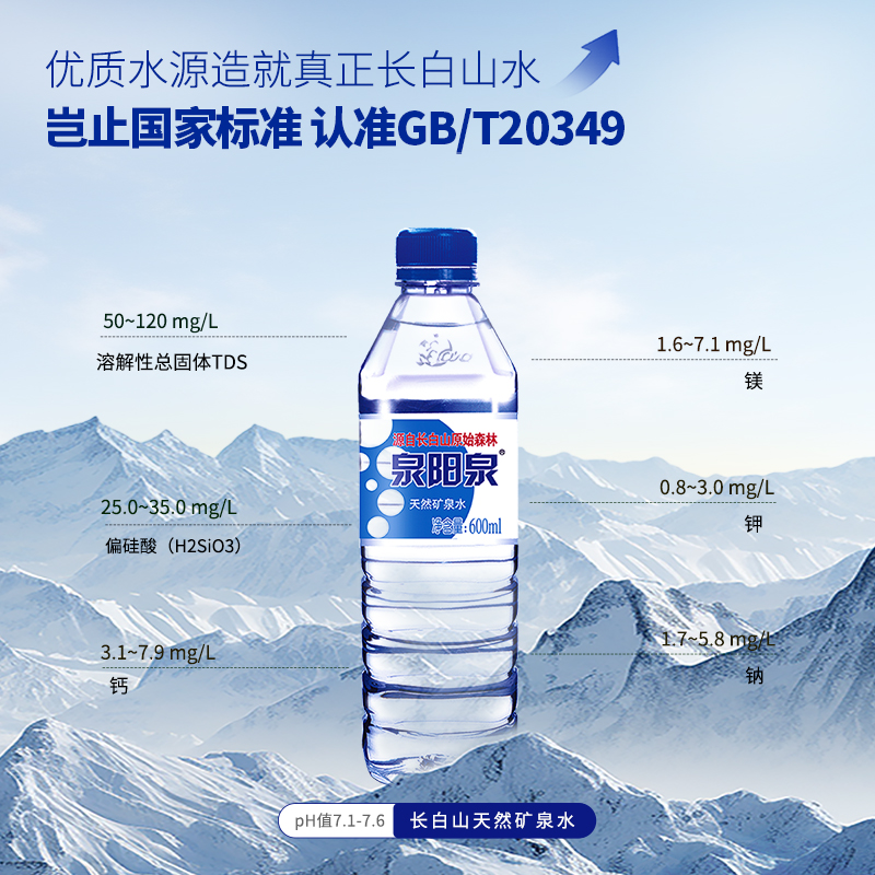 泉阳泉长白山天然矿泉水商务会议小瓶饮用水整箱装600ml*24瓶*3箱