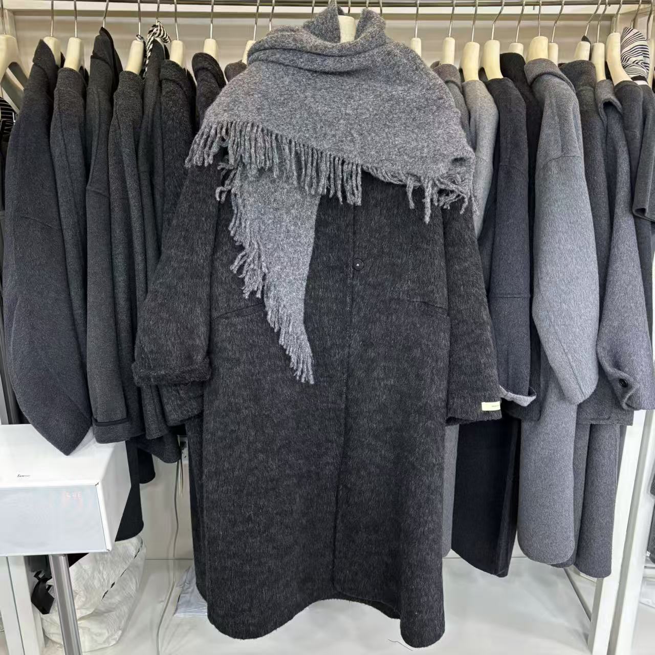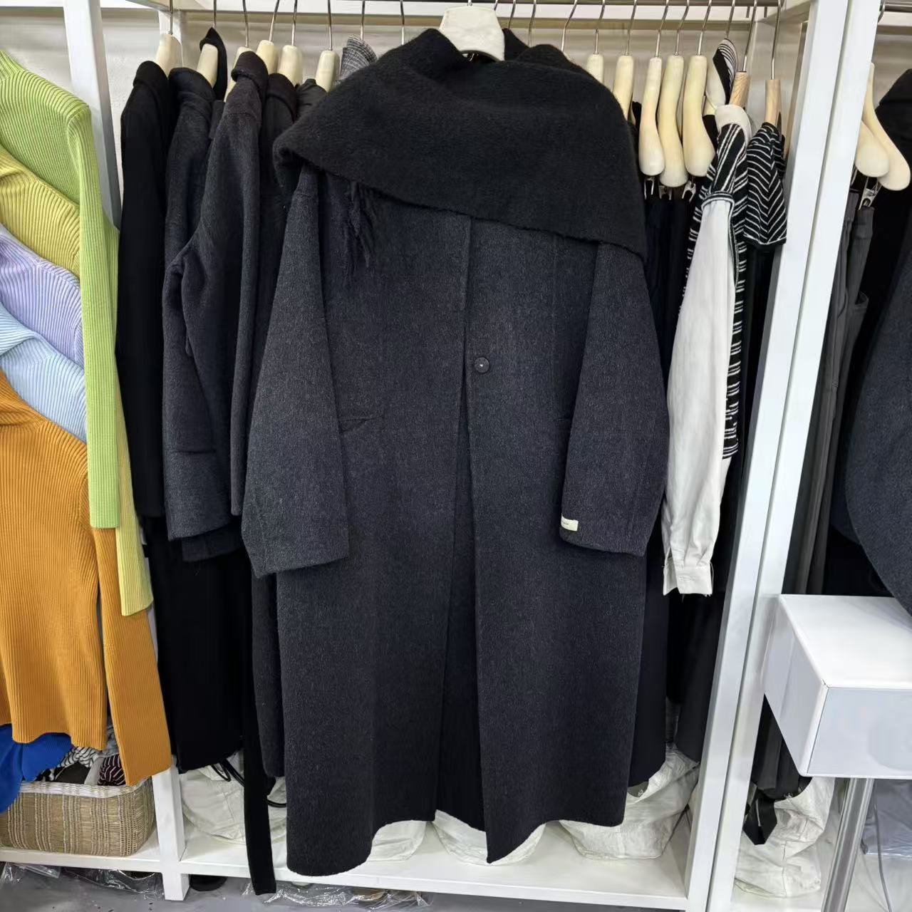 HUGLIA2025秋冬流苏披肩双面羊毛大衣女中长款慵懒风显瘦羊绒外套