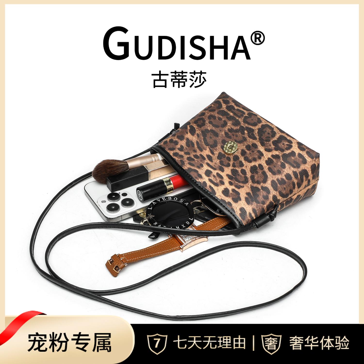 Gudisha 2024-22 豹纹 高级黑 百搭斜跨女士手机包