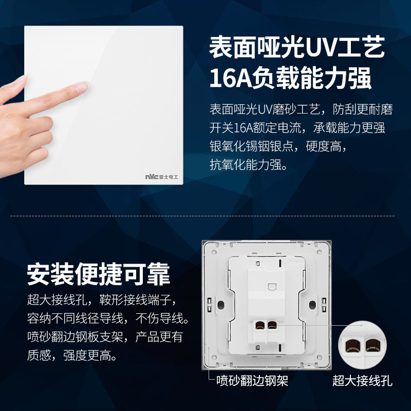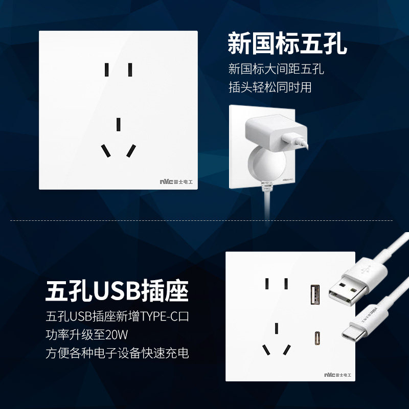 雷士电工86型开关插座面板墙壁电源Q18釉白 5.2mm超薄款16A大电流