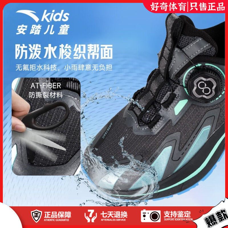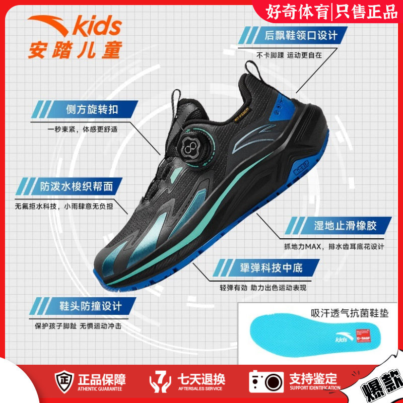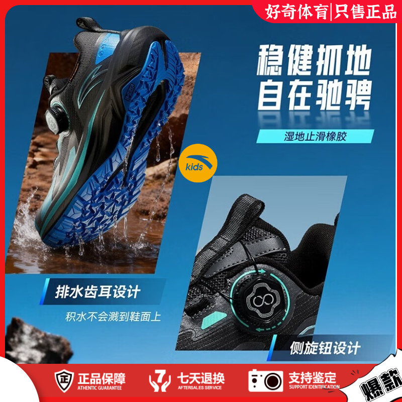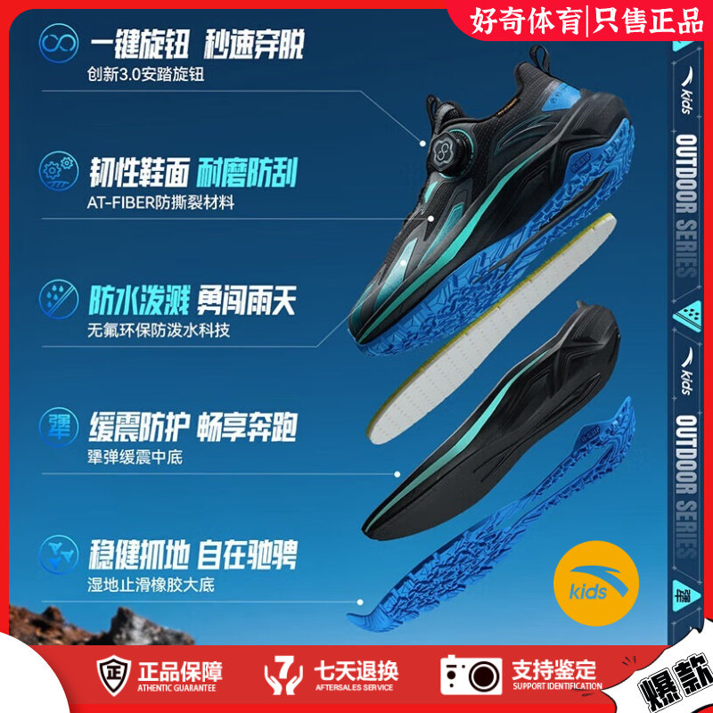 安踏儿童飞盾旋钮跑步鞋大童户外登山童鞋防滑耐磨运动鞋2025新款