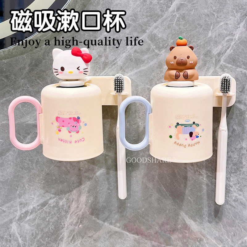 2026新款磁吸式可爱卡通倒挂漱口杯家用儿童刷牙牙刷杯子置物架