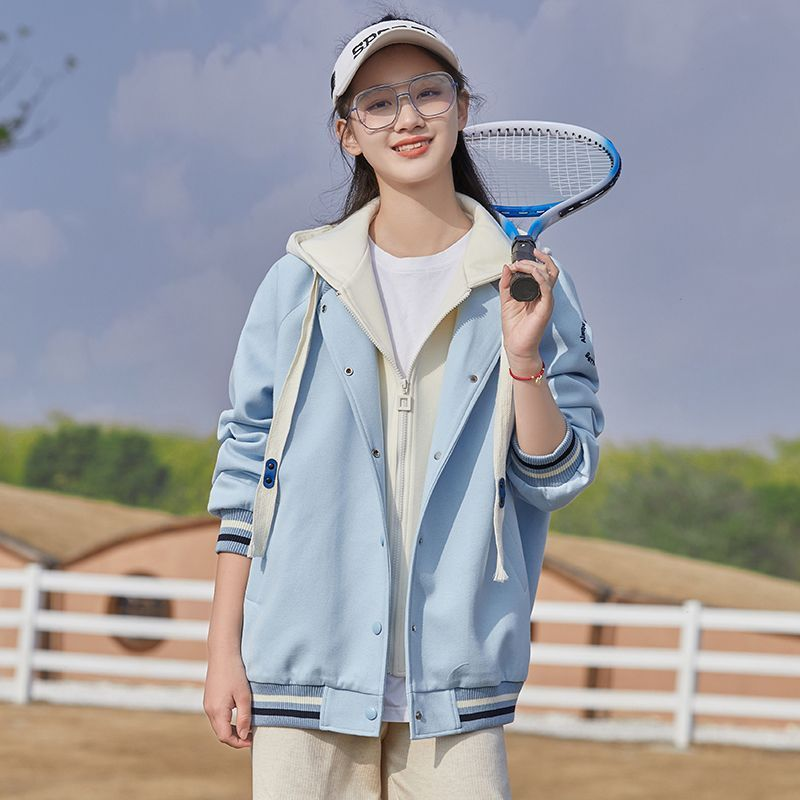 假两件连帽外套少女春秋装新款大童休闲棒球服初中高中学生上衣服