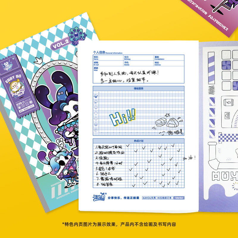 卡游蛋仔派对笔记本本子疯狂马戏团系列无线装订本A5高颜值日记本记事本儿童卡通文具周边小学生专用学习用品