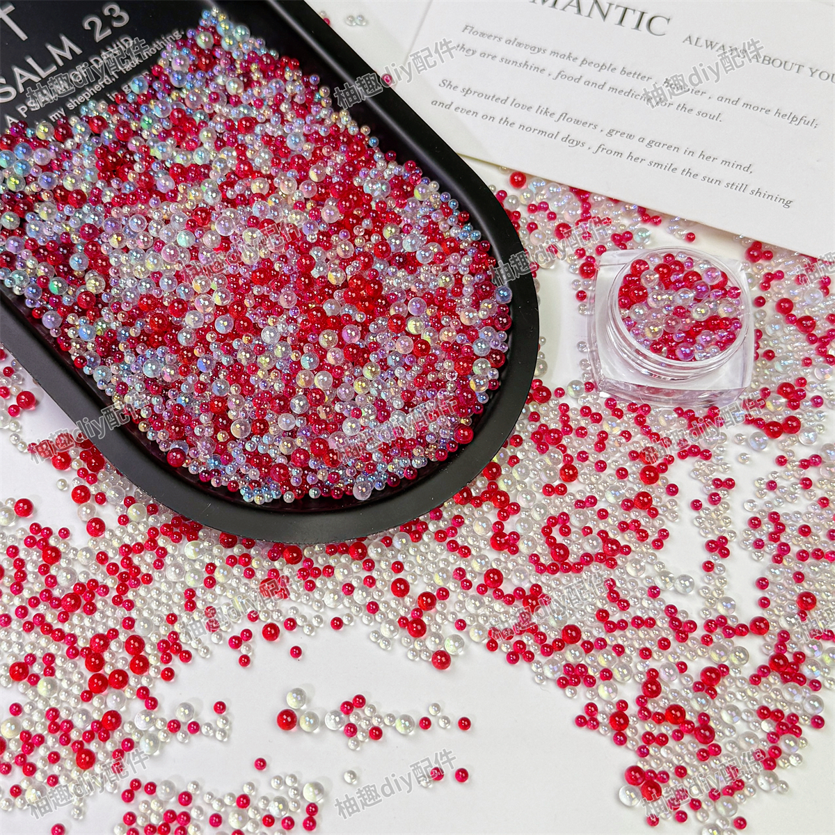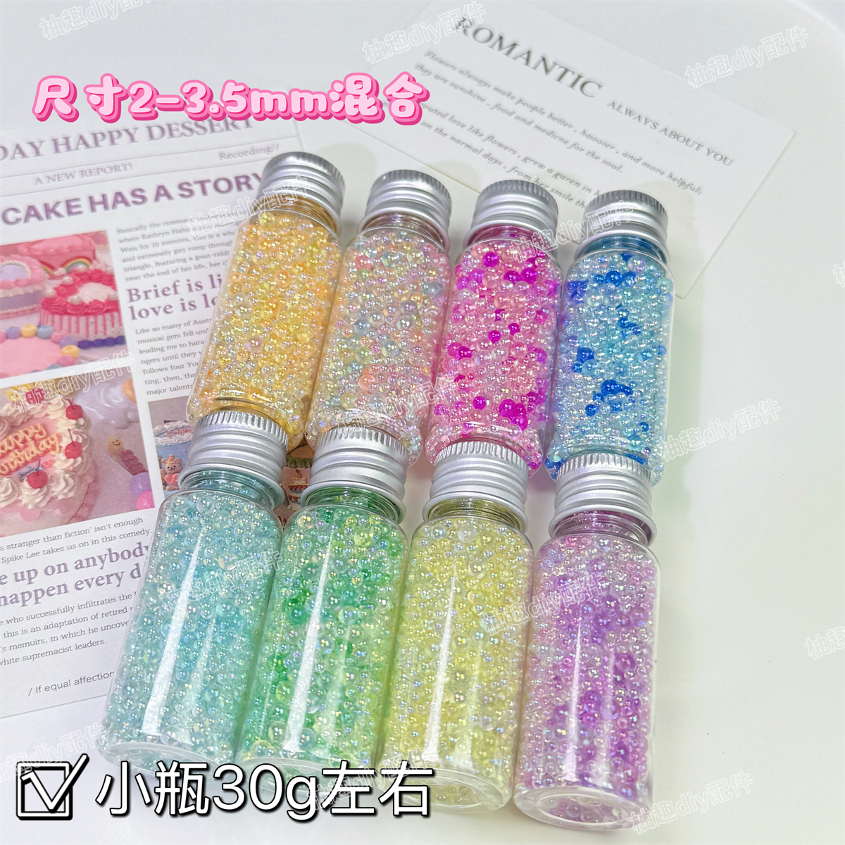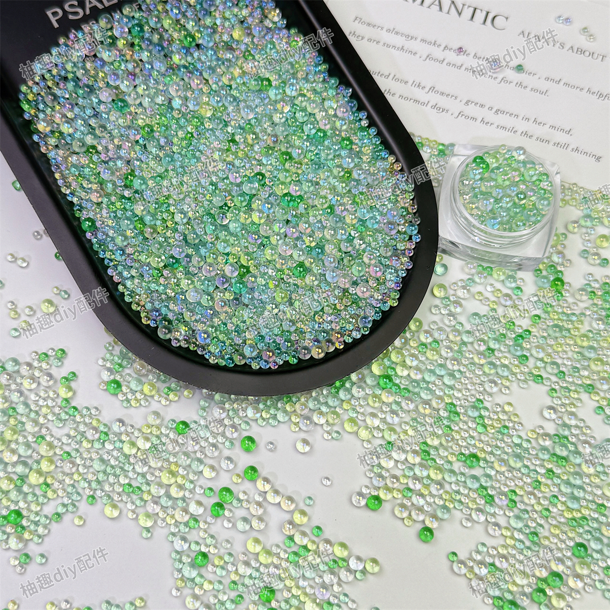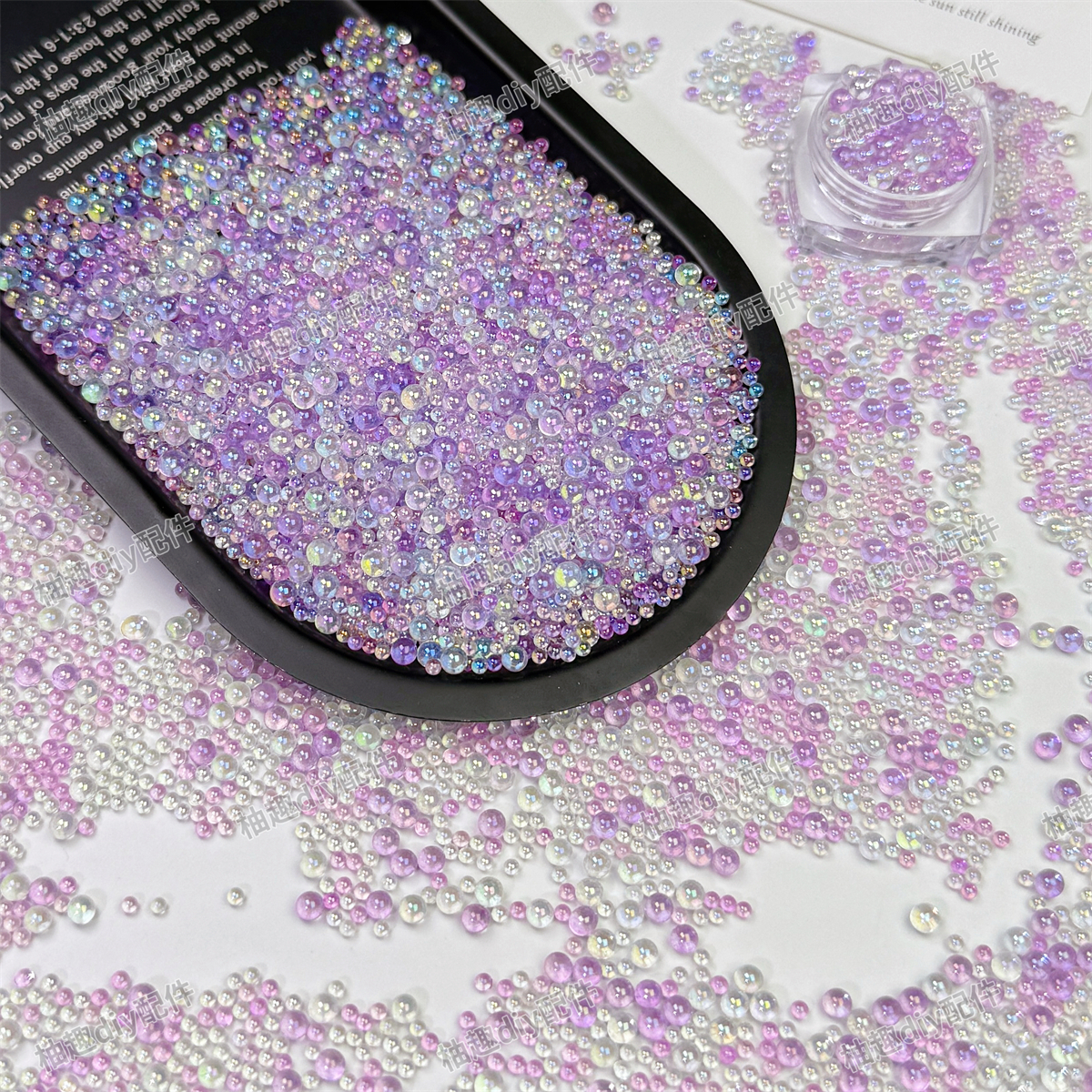混色无孔气泡珠透明玻璃圆珠子幻彩泡泡珠美甲装饰品diy滴胶微珠