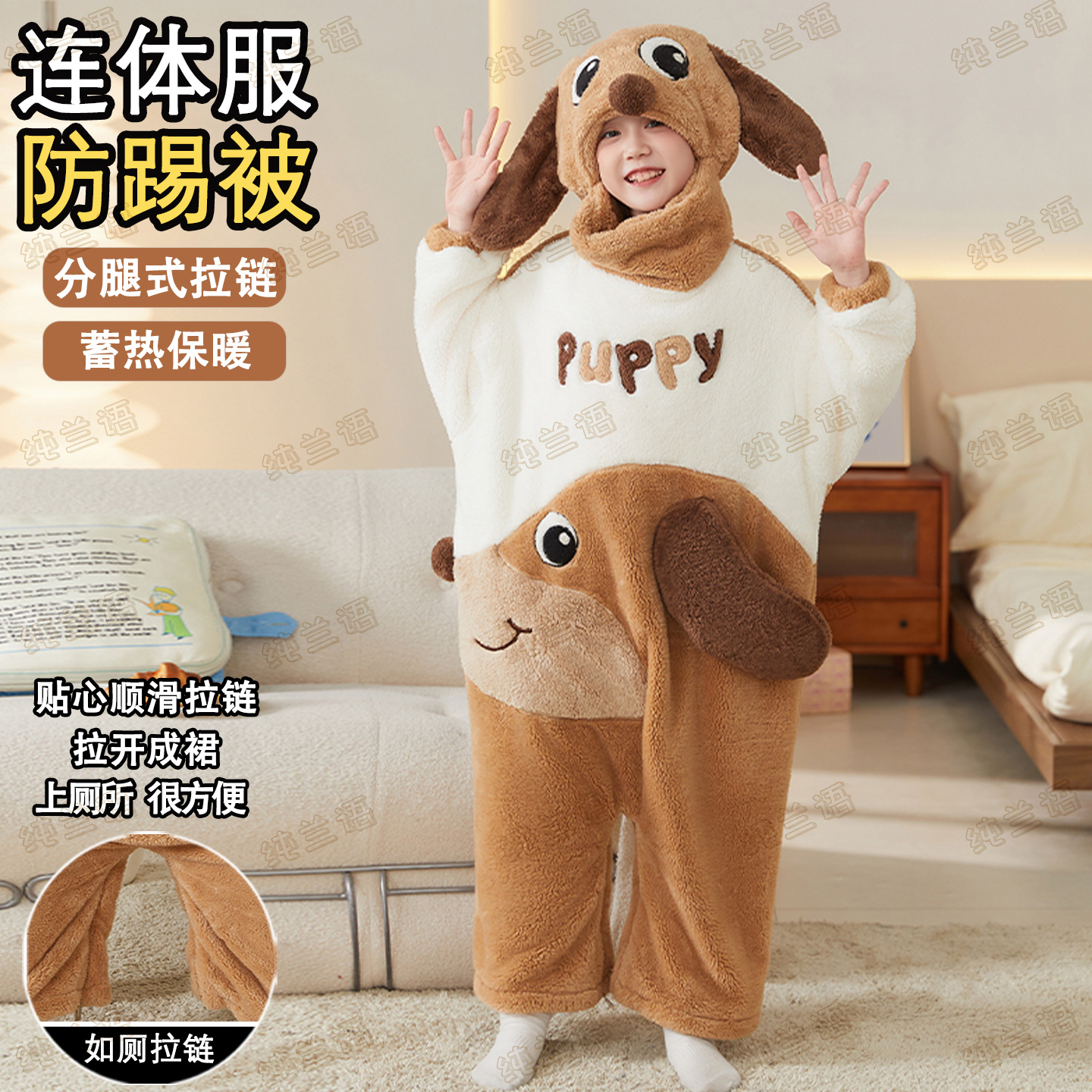 蜻蛙儿童连体睡衣秋冬季女童宝宝珊瑚绒可爱搞怪动物型女孩家居服
