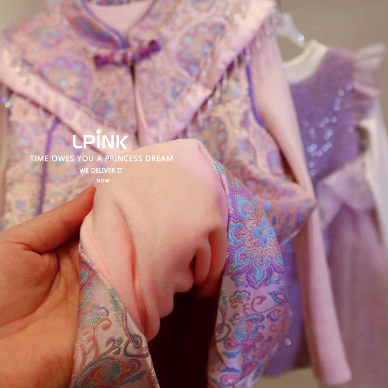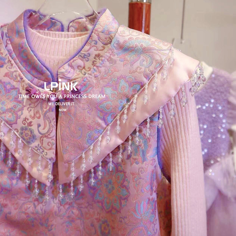 【Lpink 原创童装】女童洋气宝宝中国风云肩珠珠提花背心裙 30487