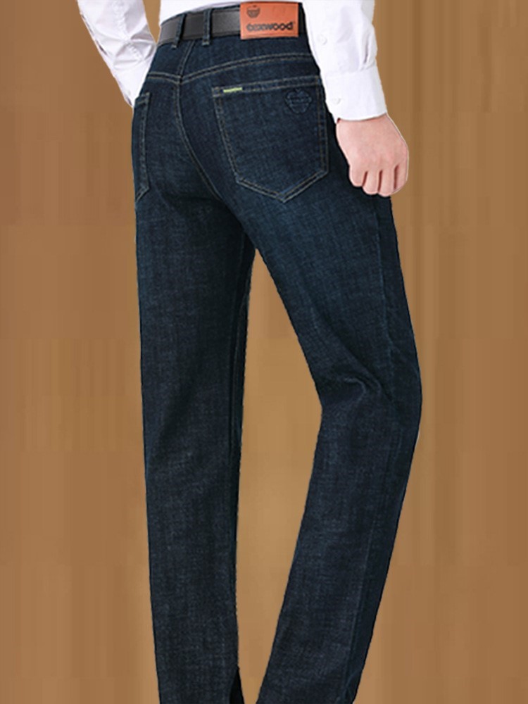 苹果牛仔裤男春秋款中年宽松直筒休闲男裤冬季加厚爸爸弹力长裤子