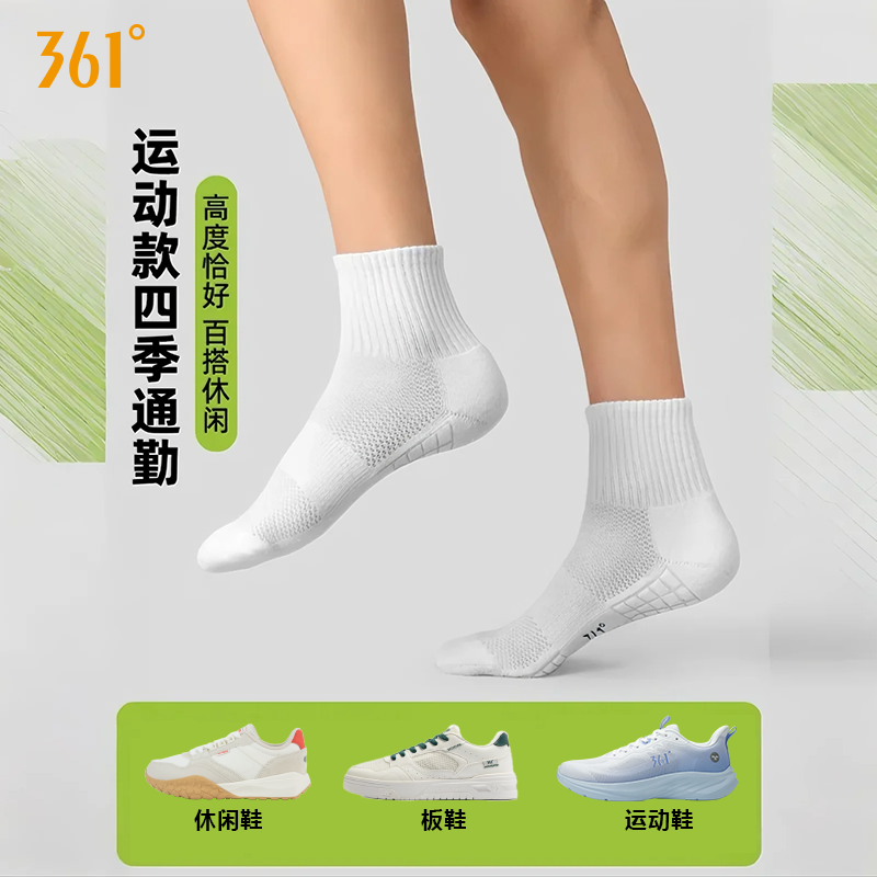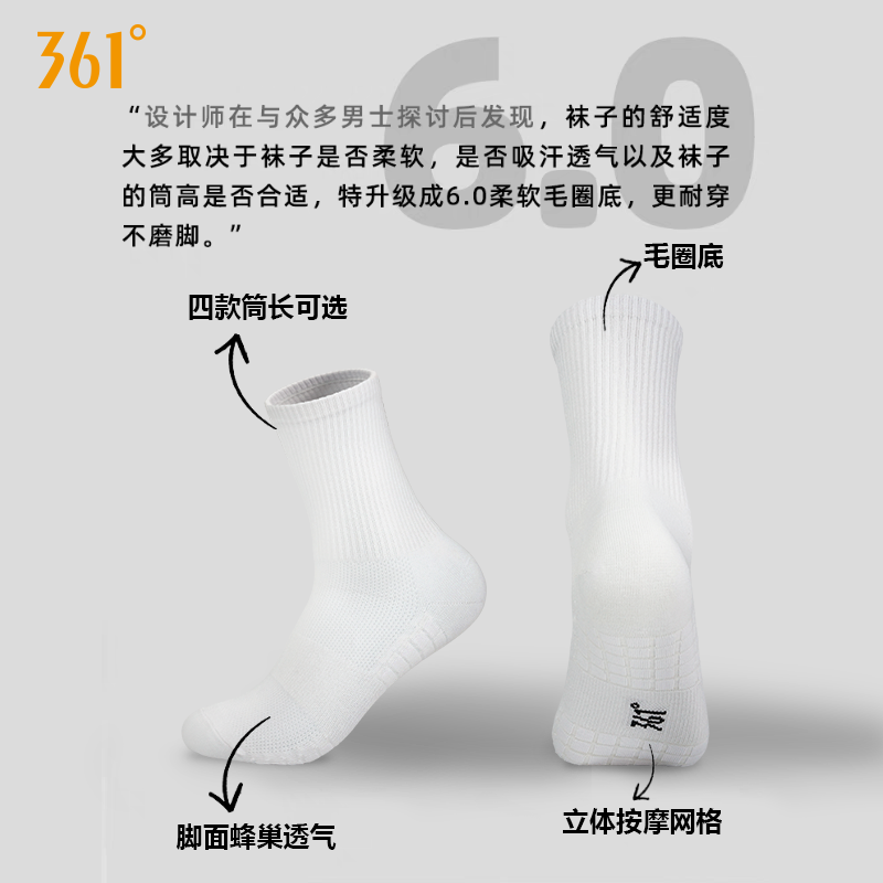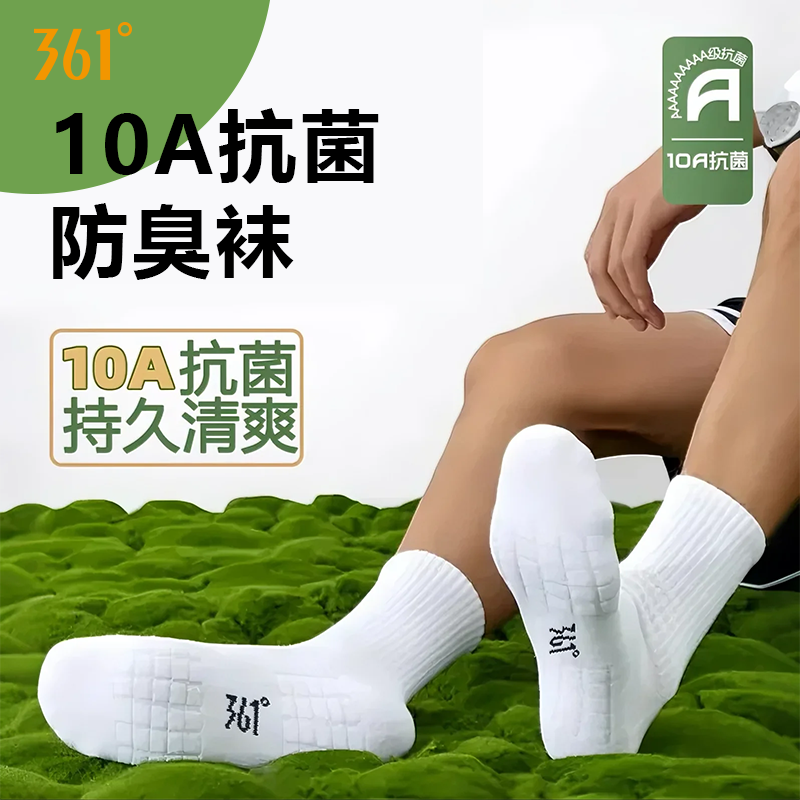 361正品男袜秋冬新款香薰透气毛巾底休闲运动中筒袜防臭白色长袜