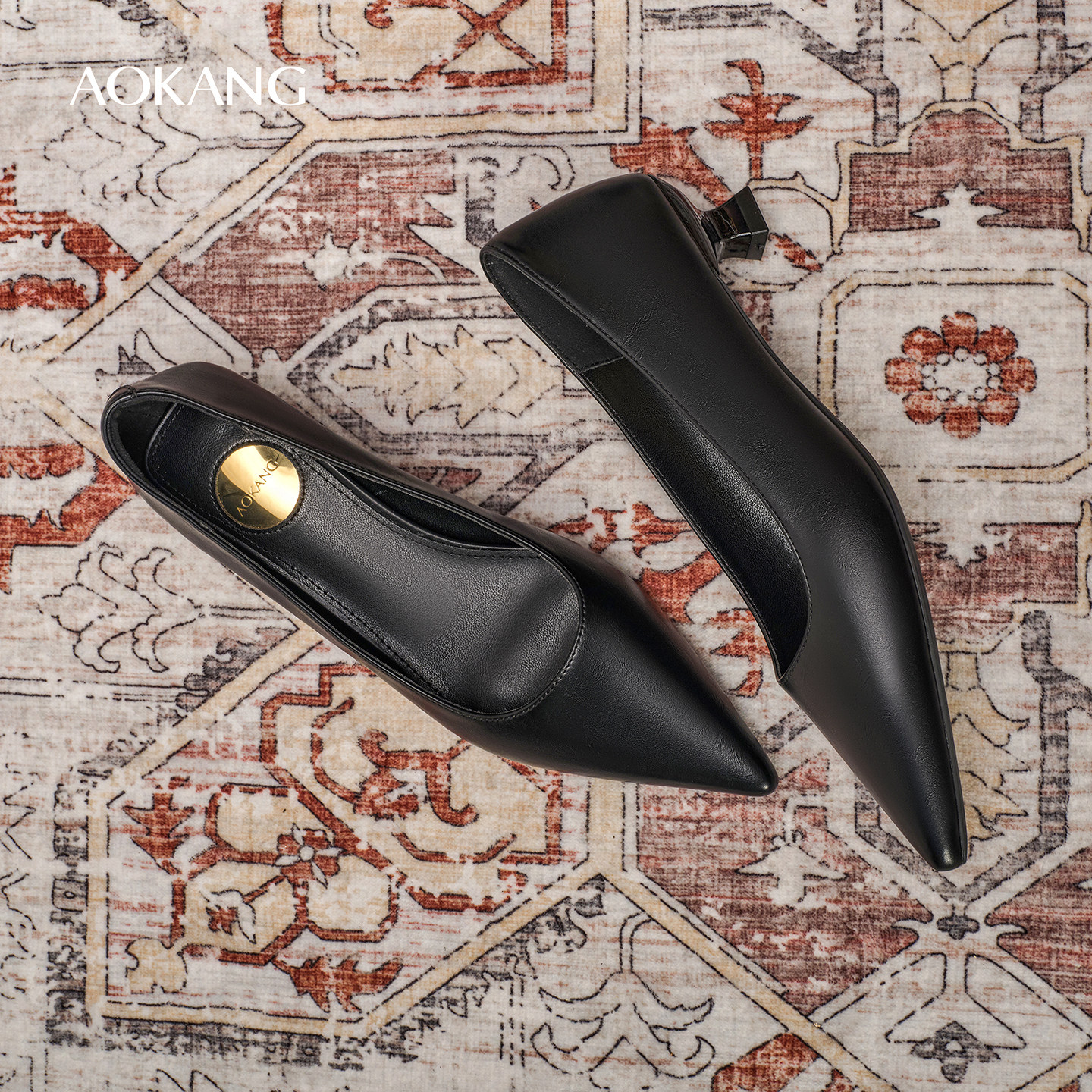 奥康 女鞋2025秋季新款职业工作鞋细跟黑色通勤尖头高跟鞋女