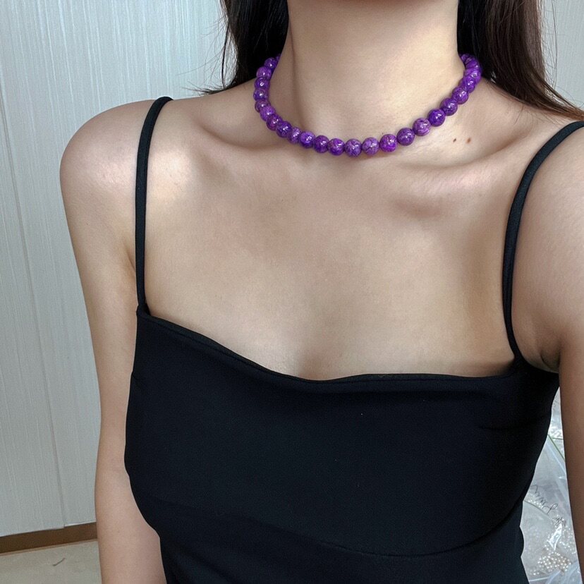 唯美漂亮南非紫松项链复古人造舒俱来色锁骨链女