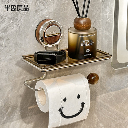 中古风吸盘卫生间厕纸盒厕所卷纸架免打孔抽纸不锈钢壁挂式置物架