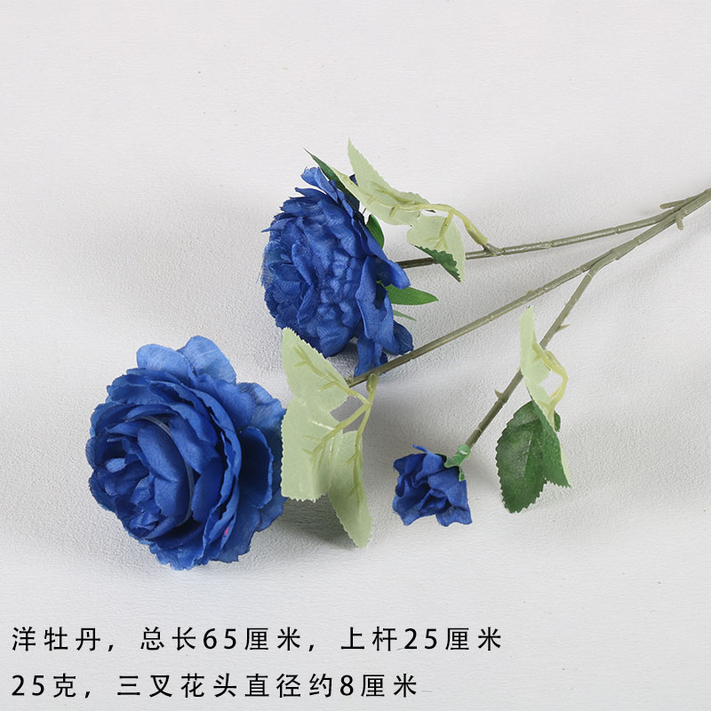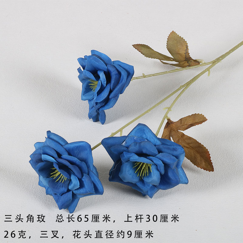 宝蓝色仿真绢花婚礼假花地排插花克莱因蓝色婚庆路引花仿真玫瑰花