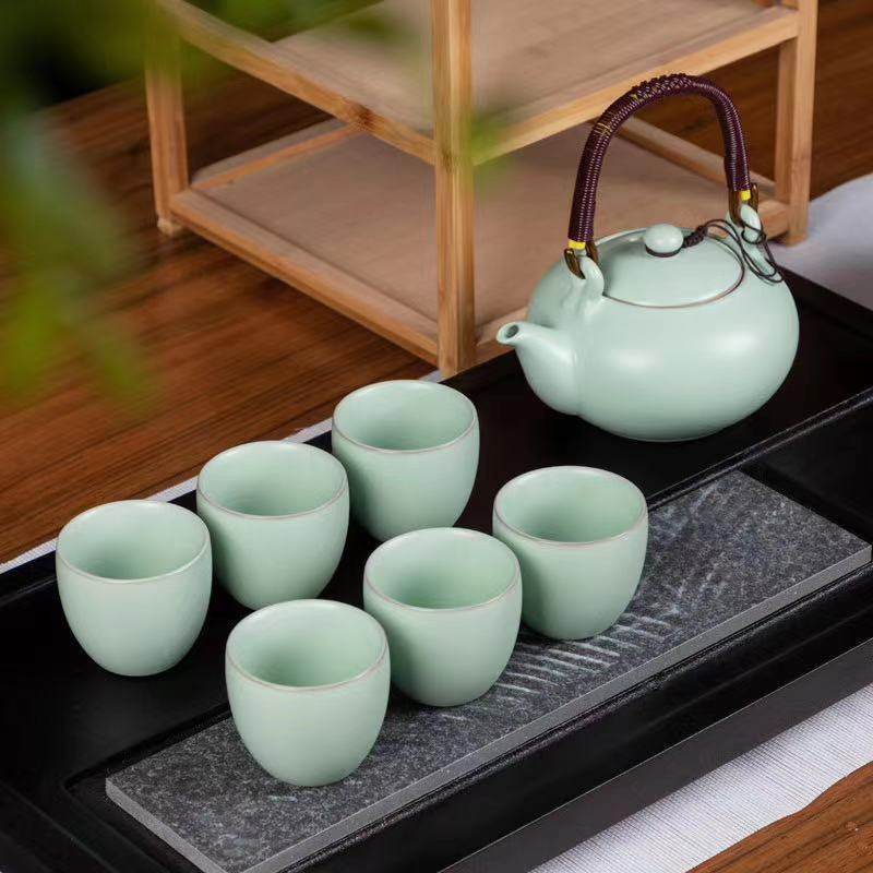 中式套装青花瓷陶瓷功夫提梁