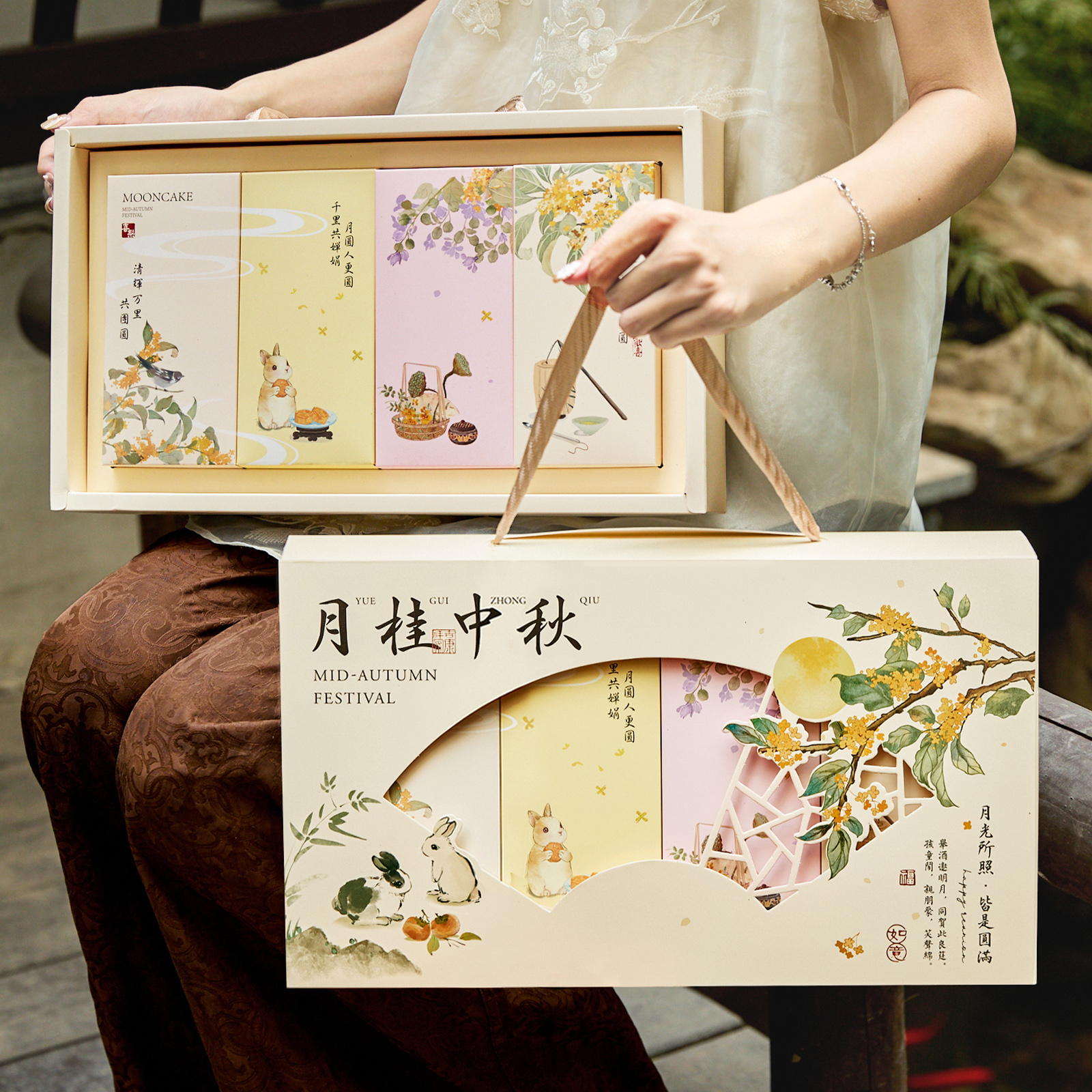 新款创意手工花酥月饼礼盒包装盒手提高档蛋黄酥空伴手礼品盒定制