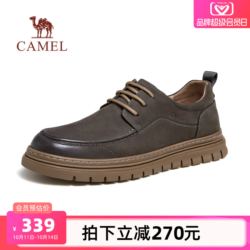 骆驼男鞋2025秋季新款牛皮复古英伦低帮系带商务工装休闲皮鞋男士