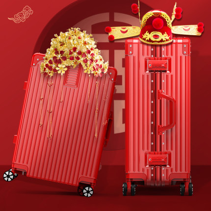 陪嫁箱结婚行李箱女新娘红色拉杆箱20寸婚礼嫁妆箱旅行密码皮箱子