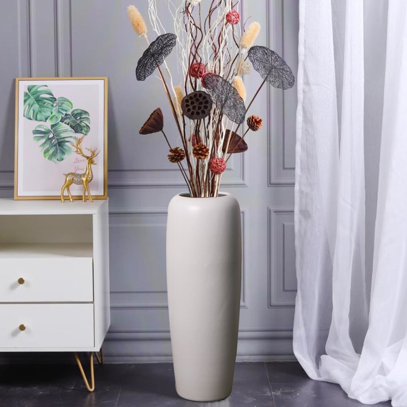 白色陶瓷落地大花瓶摆件客厅插干鲜花富贵竹水培装饰品电视柜现代