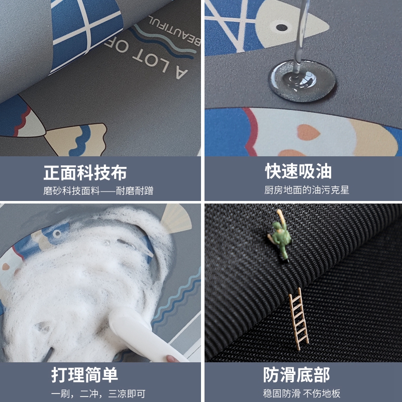 卡通厨房地垫防水防油脚垫可擦免洗吸水门口硅藻泥软垫子防滑地毯