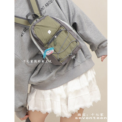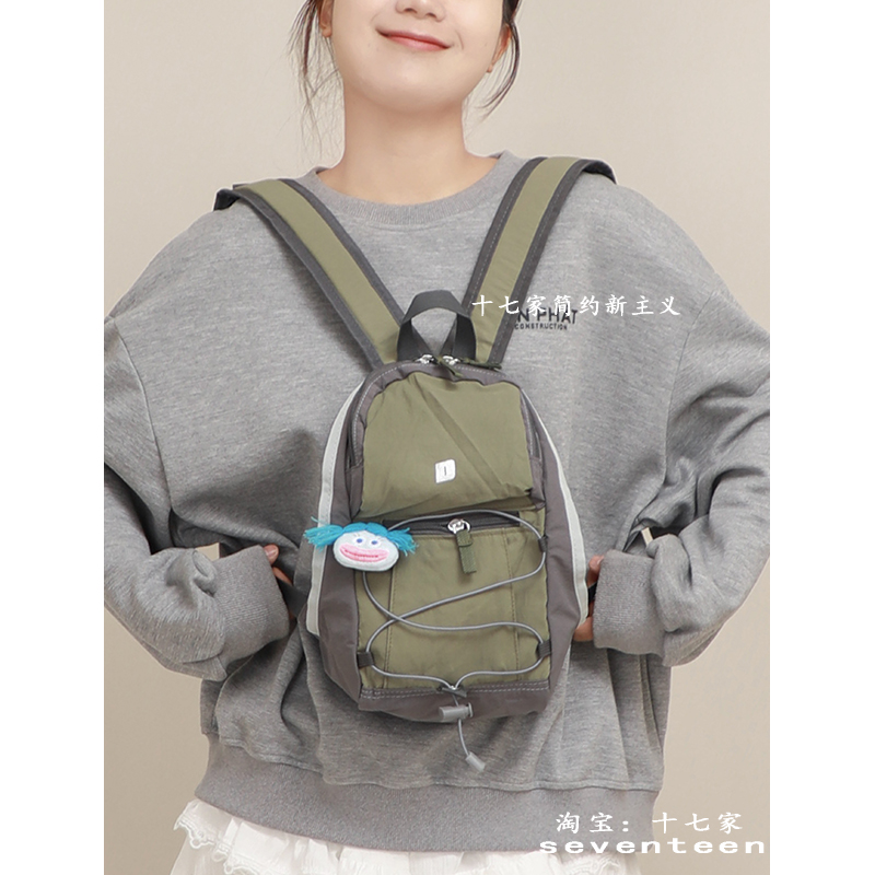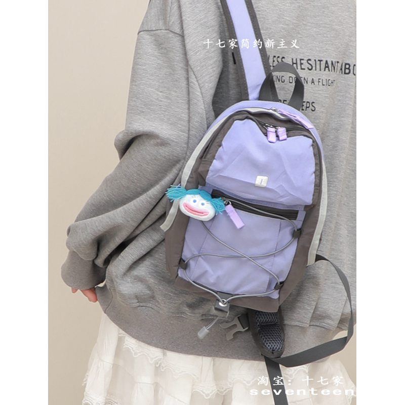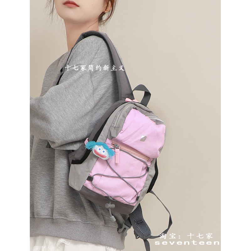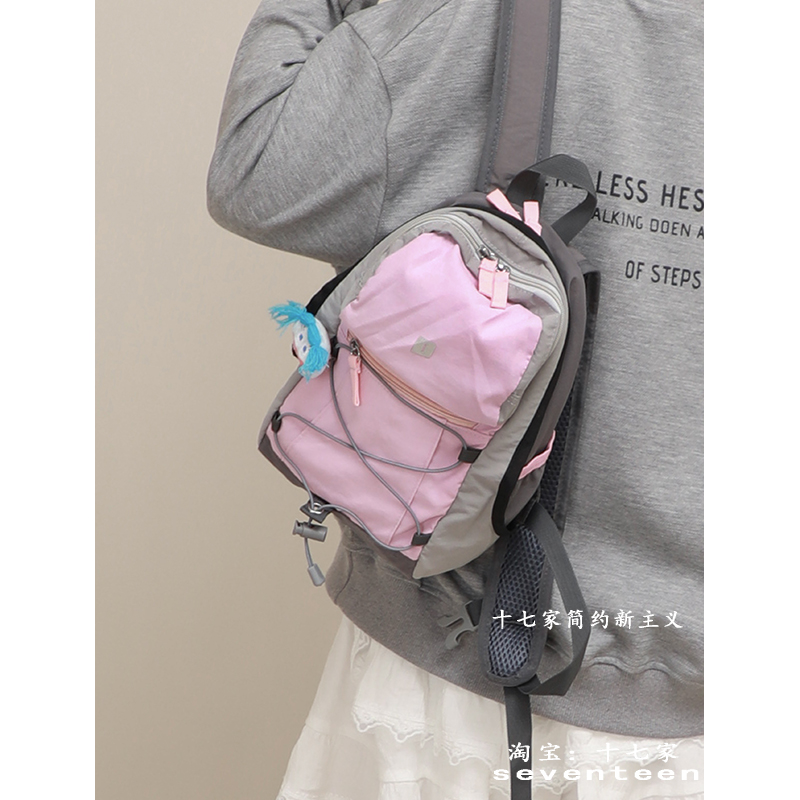十七家韩国休闲轻便双肩包2024新款撞色户外登山包防水小背包潮