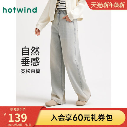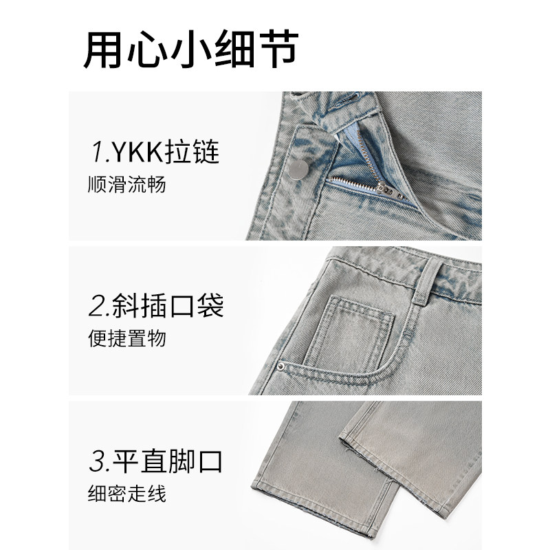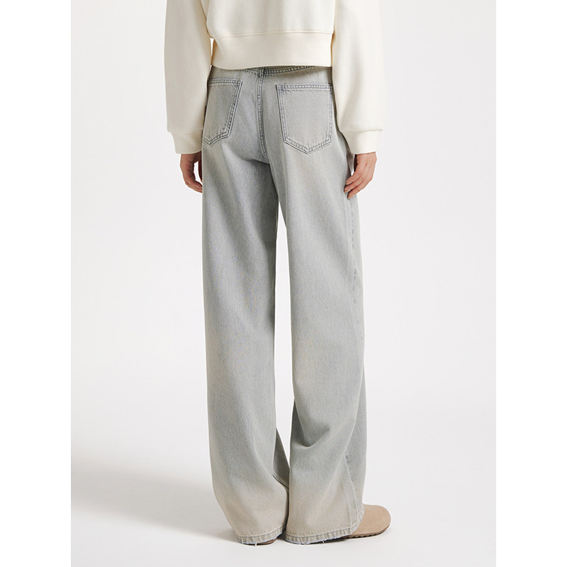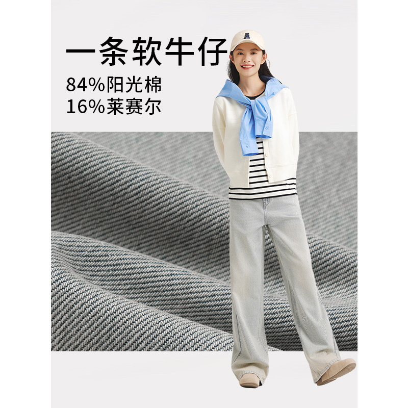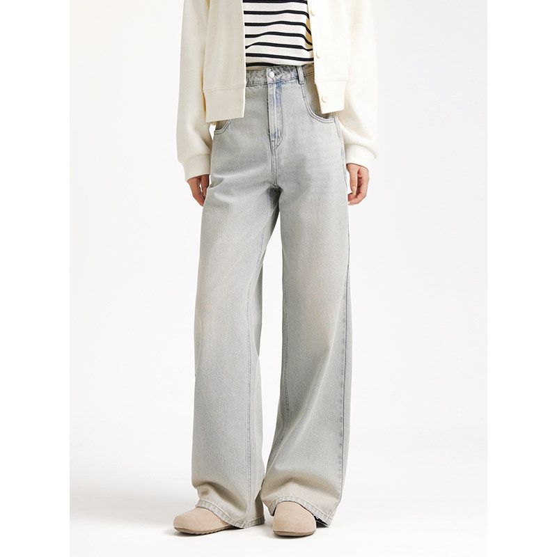 热风女士牛仔裤浅色做旧直筒裤2025年秋季新款女士阔腿直筒牛仔裤
