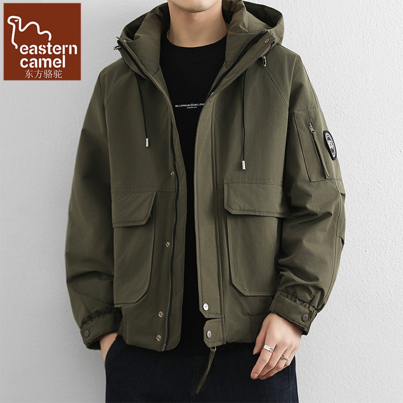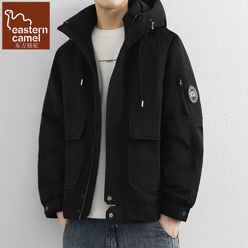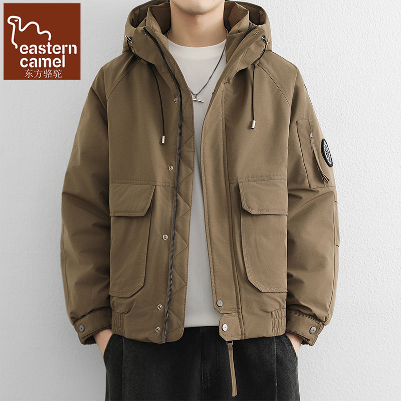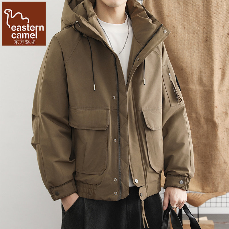 东方骆驼羽绒服秋冬季外套男潮流休闲百搭工装外套高端大牌白鸭绒